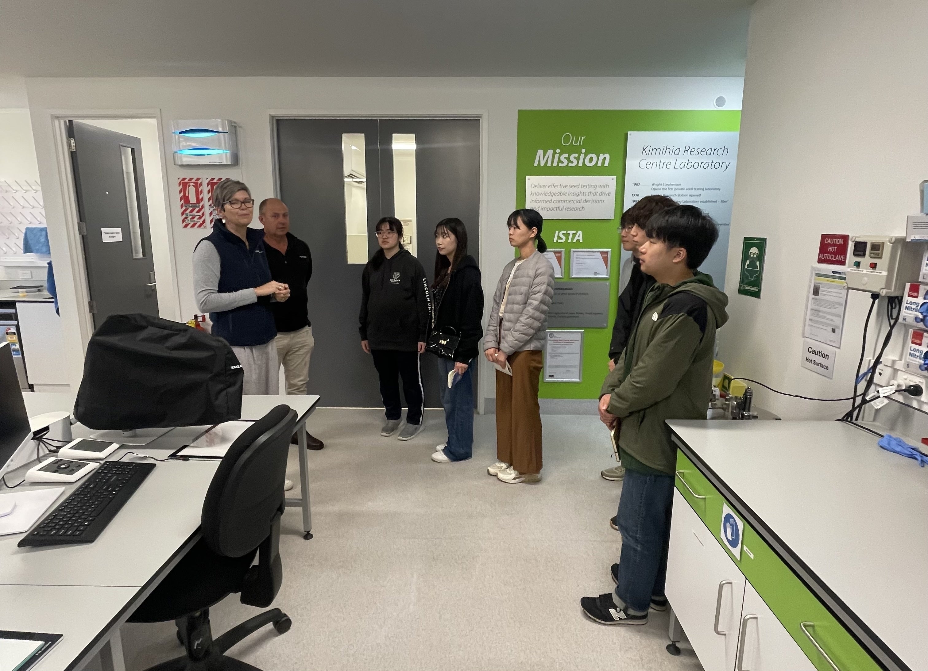 7日目はリンカーン大学の土壌学科の研究室を見学させていただきました!見学したWaimarieという建物は2024年にBest education building に選ばれており、優れた学習環境が整っています。日本で土壌学はそれほどメジャーな学問では無いかもしれませんが、農業が盛んなニュージーランドではかなり重要な学問であり、学生達はその認識の違いに驚いていました。8日目、9日目は大学が休みなのでそれぞれ動物園やテカポ湖などを訪れ観光を楽しみました!