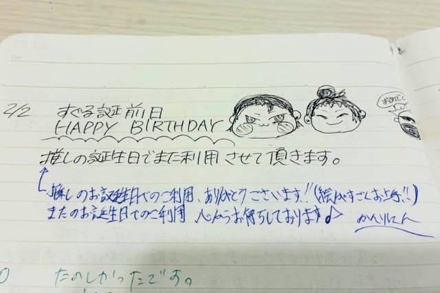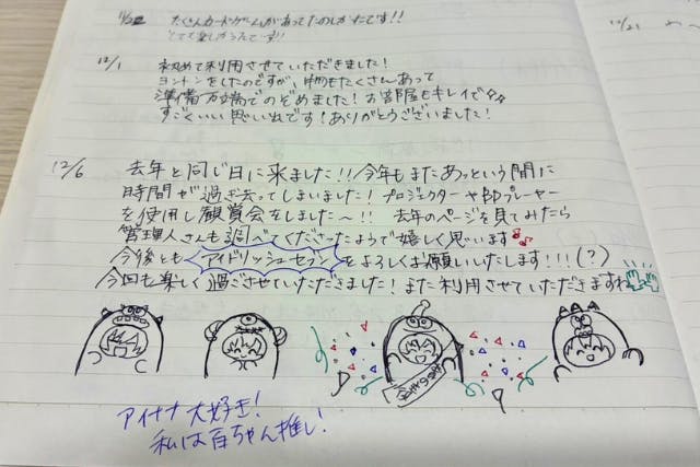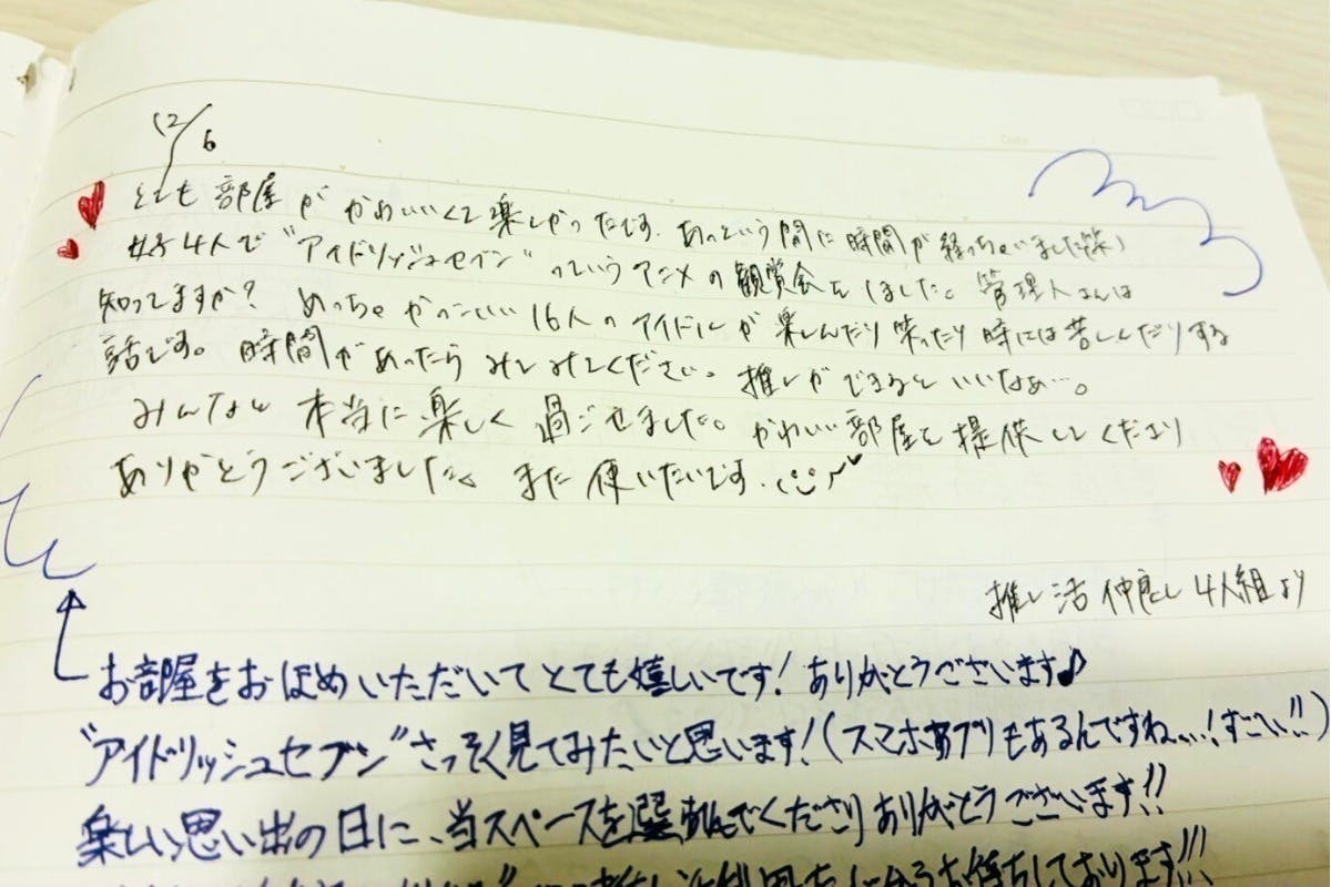 部屋に置いているノートには、推し活愛にあふれたメッセージを書いてくださる方も多く、私もいつも元気をもらっています。