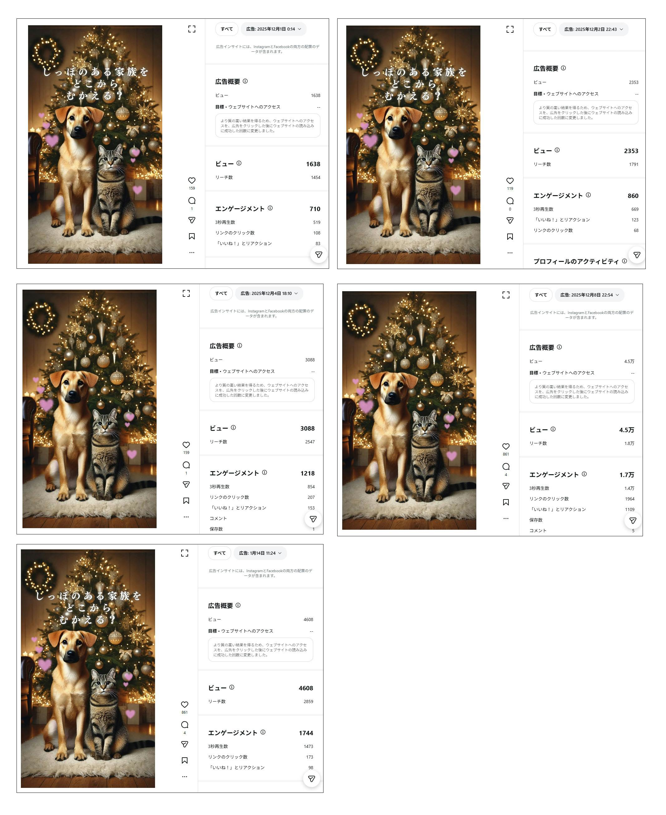 このたび、みなさまからの温かいご支援のおかげで、ペットショップでのペット購入が増える年末年始の時期に、「保護犬・保護猫を迎える」という選択肢を呼びかけるインスタ広告を発信することができました。