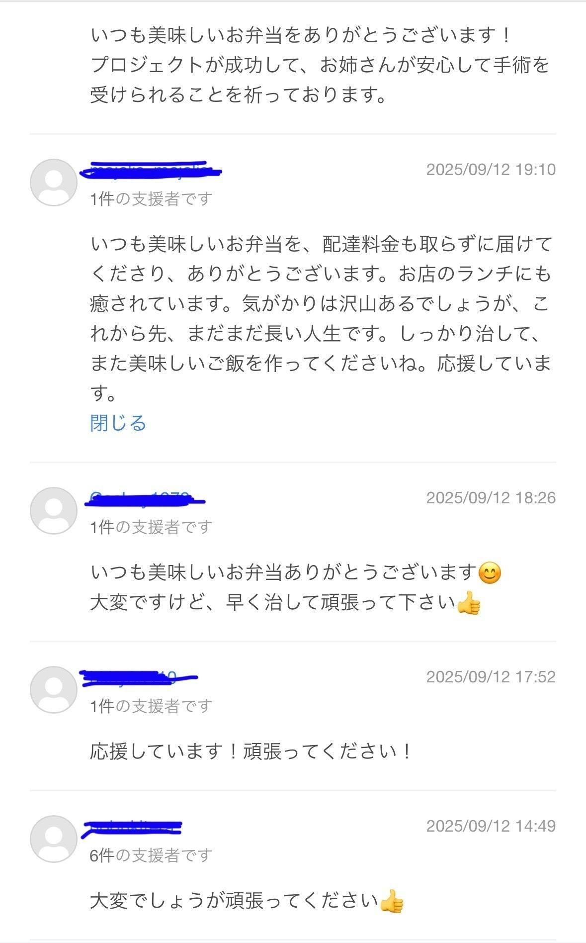 このプロジェクトでのご支援だけでなく、直接来店してご支援くださるお客様もいらっしゃったり、『この味は天才!』『今まで食べた中で一番おいしい』『絶対また来ますね』など、お褒めの言葉を残して帰っていかれるお客様の多さに、このお店をやっていて良かった、と改めて思う今日この頃です(*;ω人)
