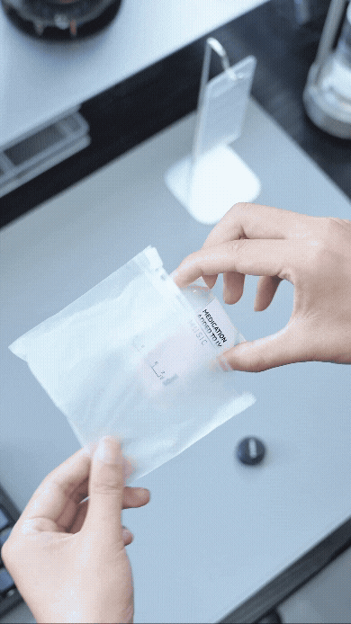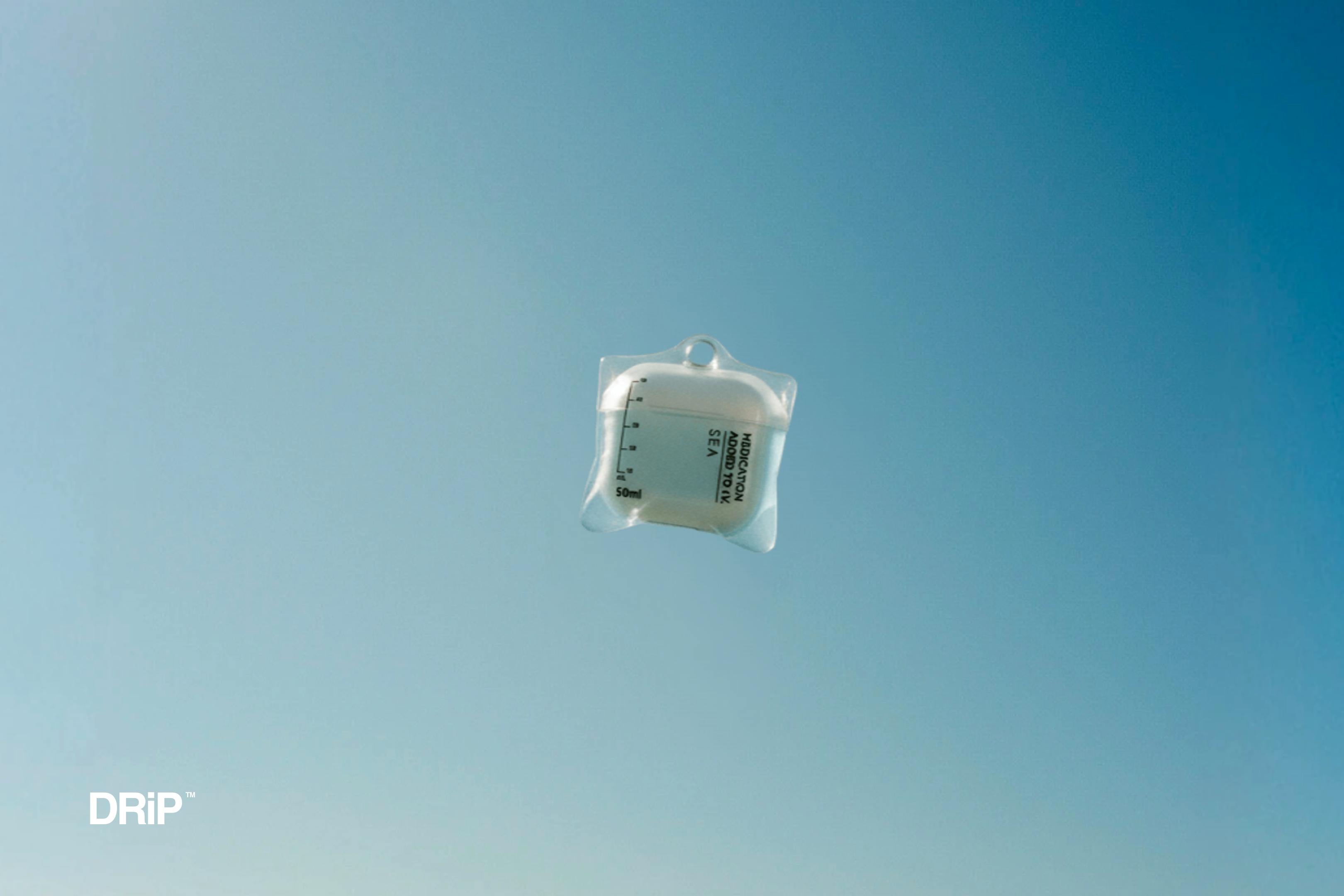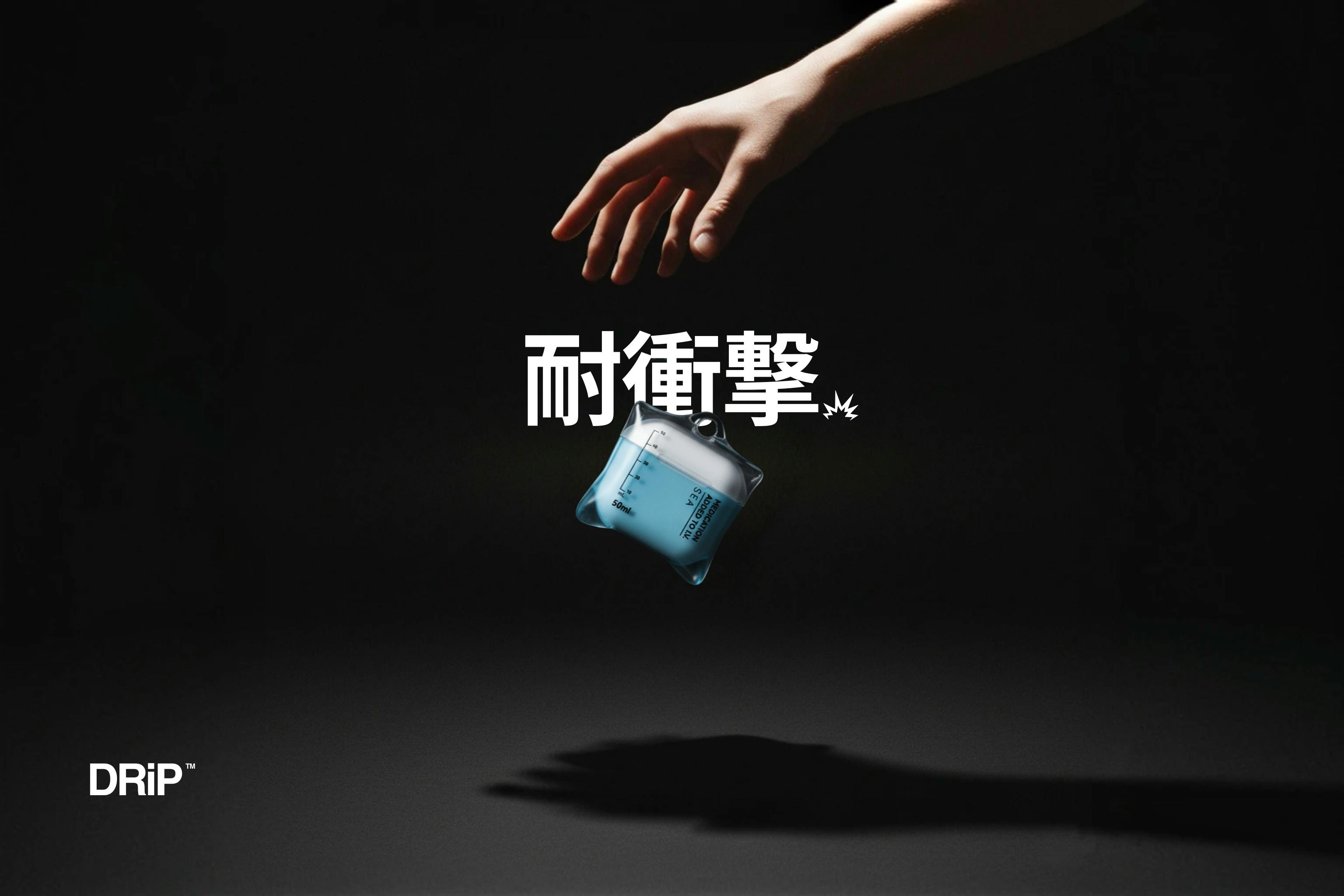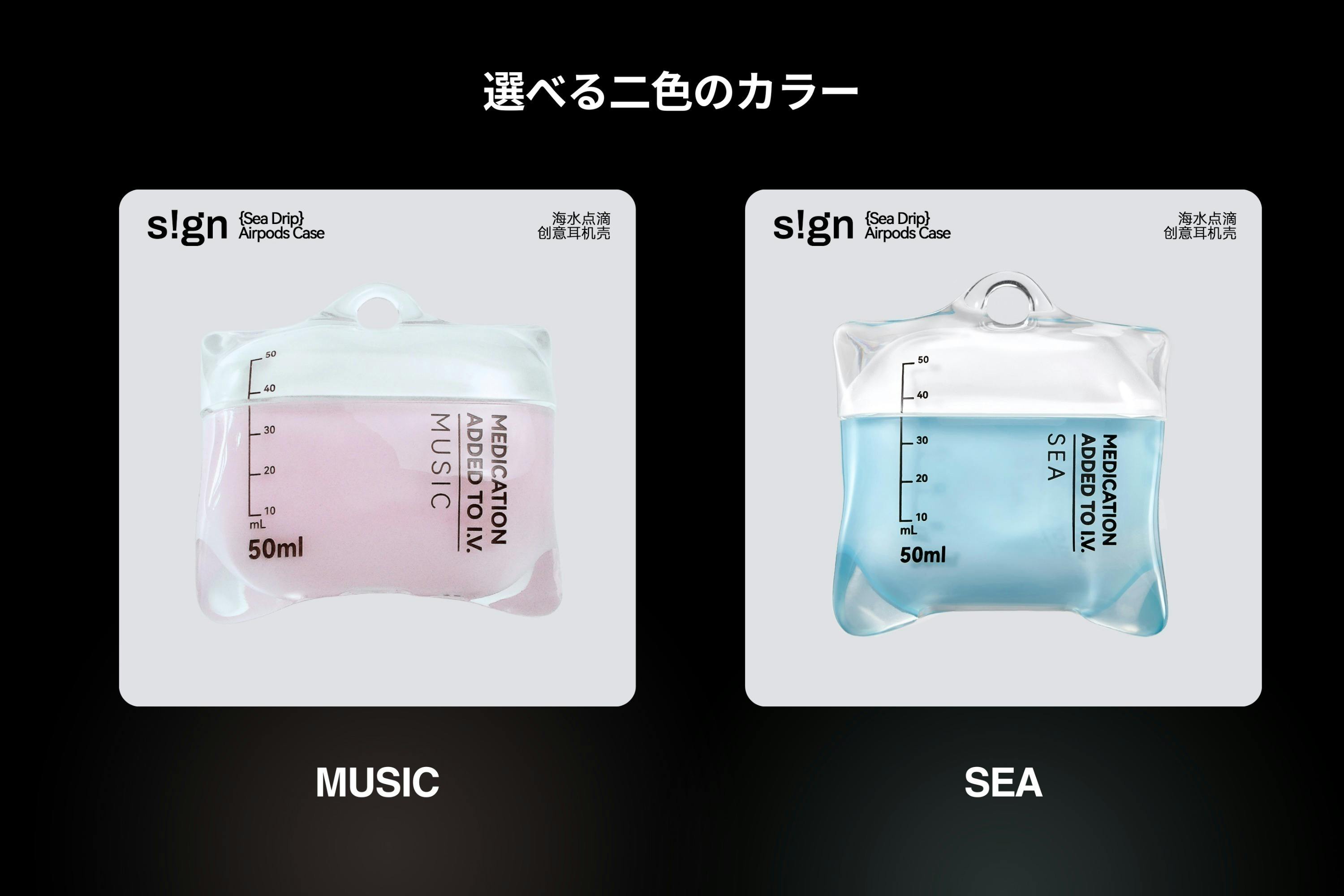本製品は、点滴パックをデザインモチーフとして採用しております。これは、音楽やエンターテイメントが時に私たちにとって栄養となる、というポジティブなコンセプトを表現したものです。