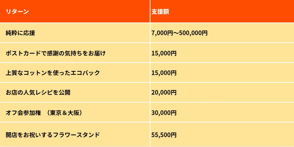 現地に来られない方でも、応援しやすい魅力的なリターンをご用意しました。