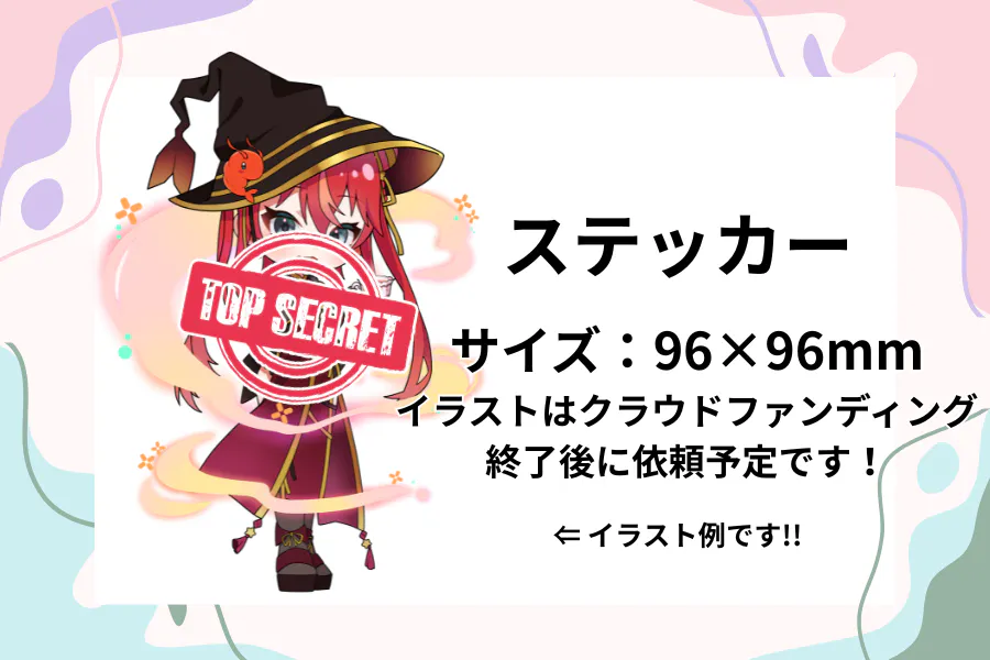 イラストはクラウドファンディング終了後に依頼しますのでデザインはお楽しみとなります