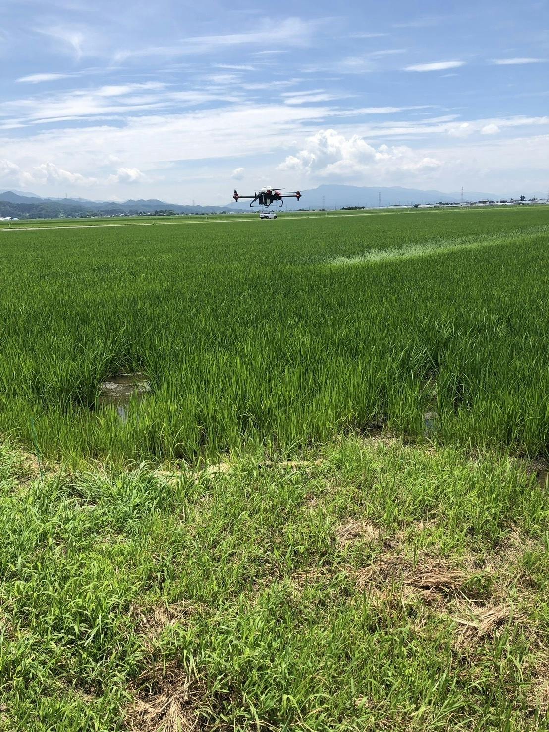 が、ドローンを使うことによって不利な地域でも大げさではなく1時間かかる仕事も10分で終わり、尚且つ重い肥料をかついで歩く、防除除草作業も体力勝負にならず高齢の方の負担が激減します。そして時間の省力化で他の耕作放棄地などでプラスで栽培する時間がとれるかもしれない=生産量があがる