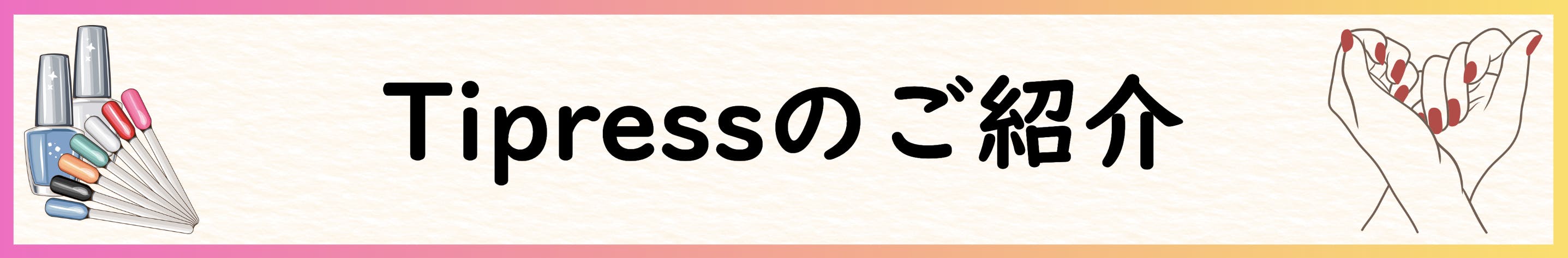 Tipressは岡山市北区にあるネイルサロンで、Tipressという店名は『tip = 爪先 + impress = 感動』の造語で、爪先の感動を通じてお客様に幸福になってもらいたいという思いからこの名前にしました。