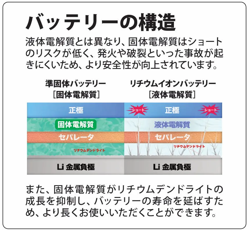 そこでおすすめなのが、今話題の [準固体バッテリー] です。
