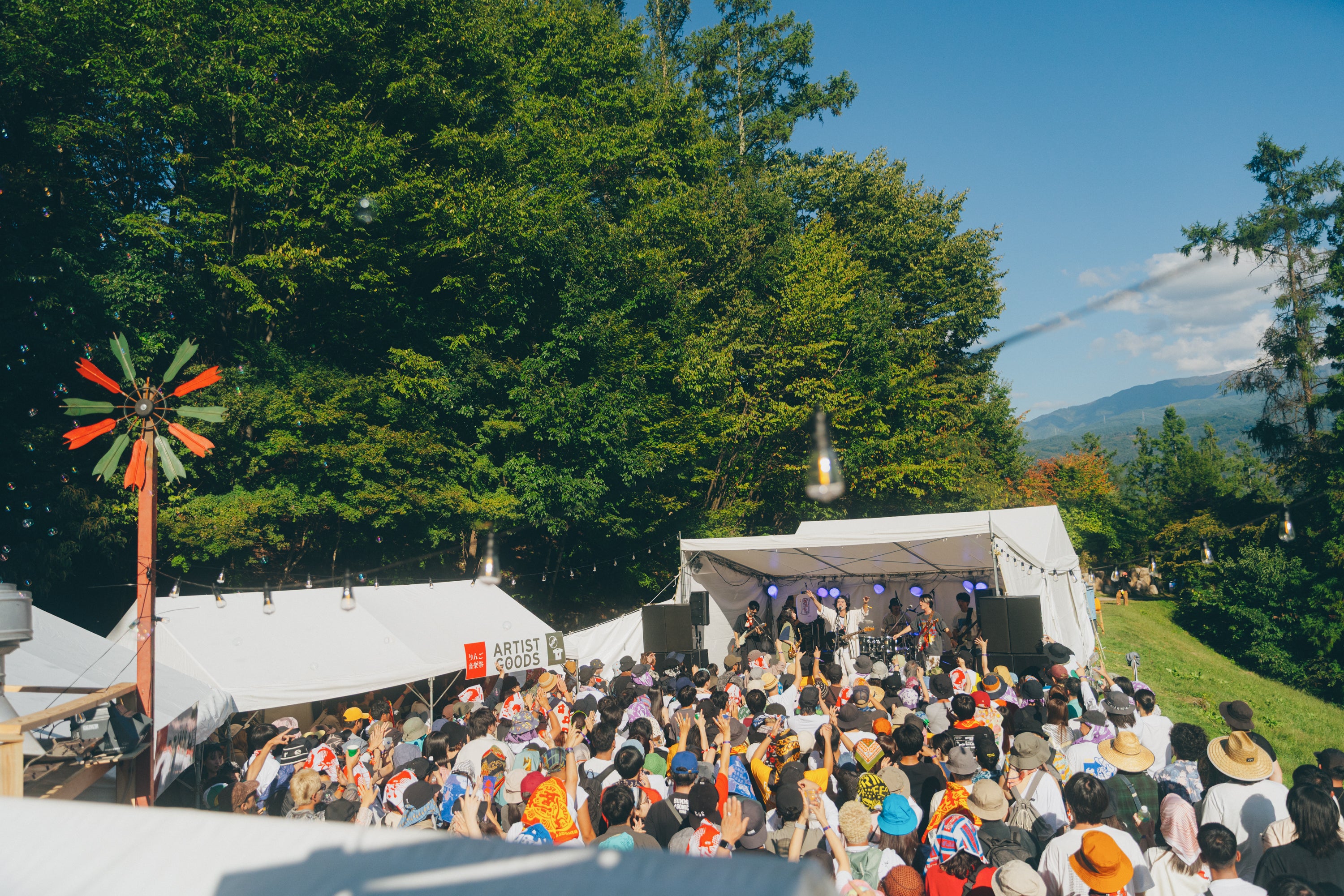 「りんご音楽祭」は、長野県松本市アルプス公園で開催される野外音楽フェスです。2025年で17年目。街の人たちに愛され、お仕事帰りでも気軽に立ち寄れる「とにかく楽ちんなフェス」として続いてきました。