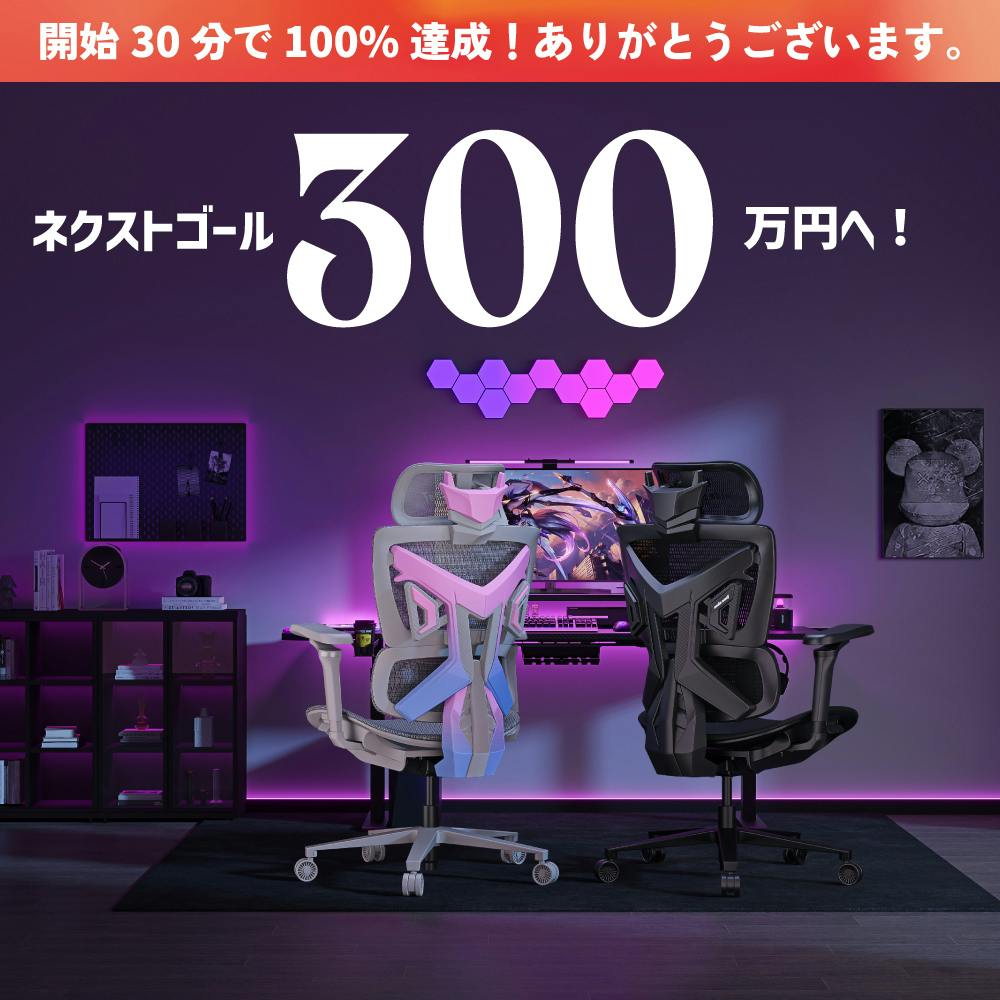 お世話になっております!Andaseat日本公式の川﨑と申します。このたび、無事に【メッシュチェアシリーズX-AIRの先行販売】プロジェクトを開始することができました!そして!!なんと開始からたった30分で目標金額100%を達成...!ご支援いただいた皆様のおかげです。そこで、ブランドの国内認知度拡大を目的にネクストゴールを掲げることにしました。次なる目標は、300万円!「まだちょっと悩むな...」とお思いの方も、ぜひ引き続きご検討ください!ご支援前・後に関わらずご不明点やご質問にはしっかりとお答えいたします。お気軽にご連絡ください。あらためて、ご支援くださった皆様ありがとうございました!引き続きよろしくお願いいたします。