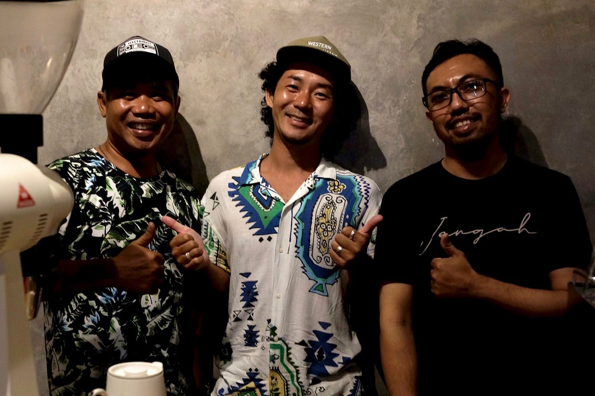 左から 田川貴之、枷場良介 (オーナー焙煎師)、澁谷高太郎 (新所沢店焙煎師)、舘岡亮