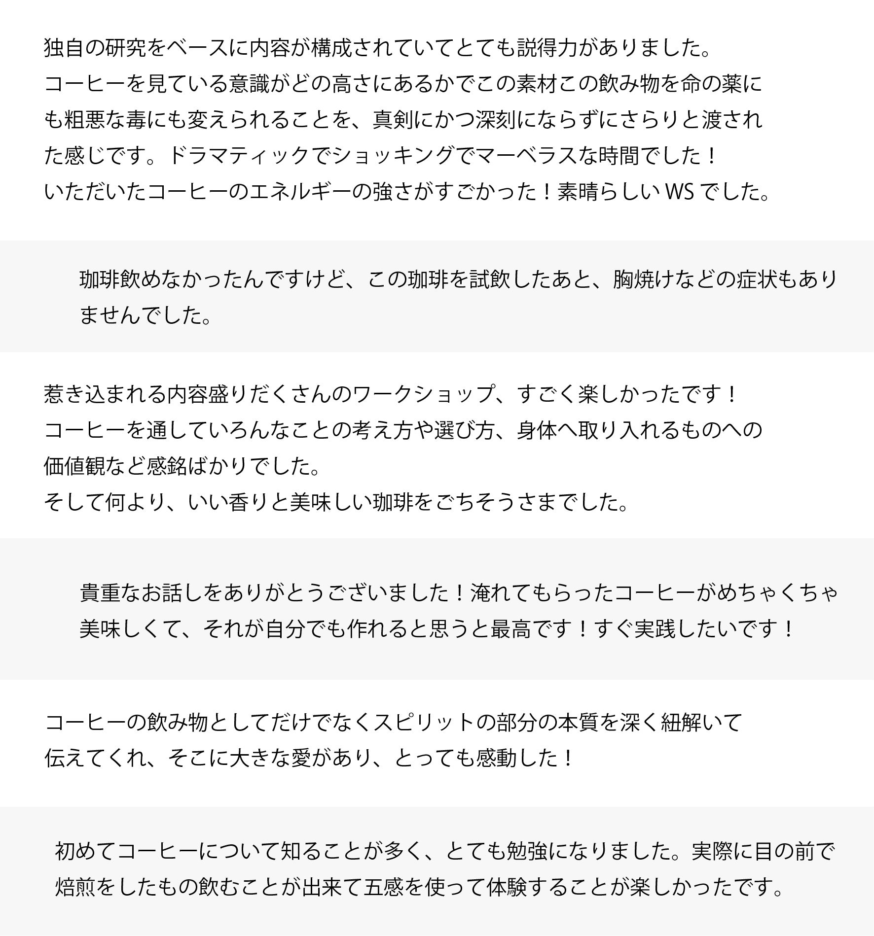 ワークショップ参加者の方の声(アンケートより一部抜粋)