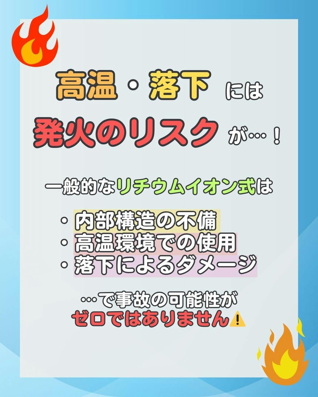 リチウムイオン電池は、落下や内部の劣化、充電ミスなどが重なると、冬でも発火・発煙するリスクがあります。