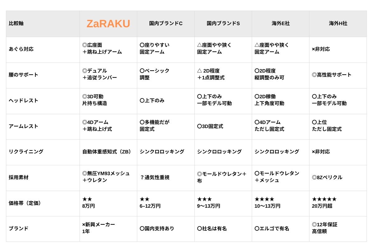 そう、ZaRAKUは、まさにこれらのエルゴノミクスの要素をフル装備した、