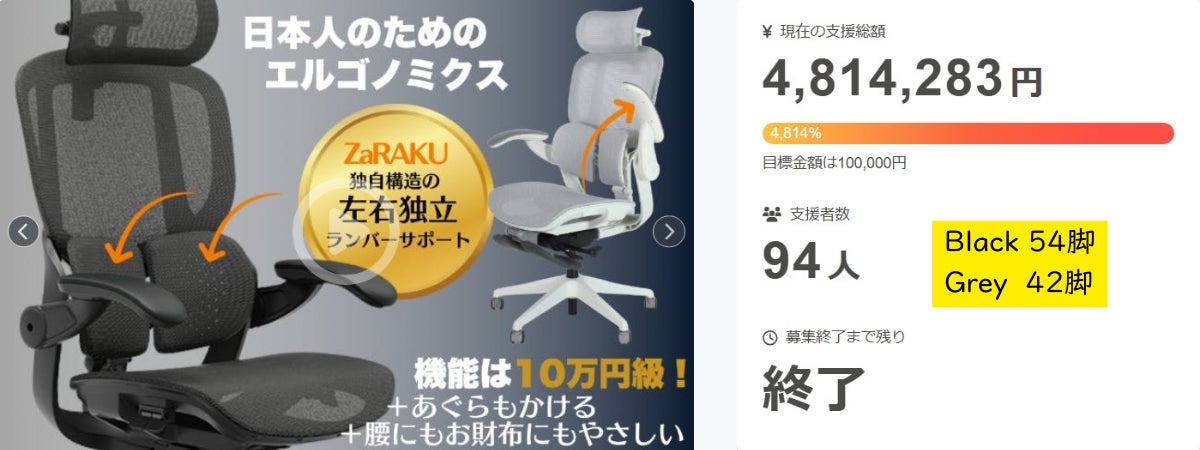 2026/02/27 20:00ようやく暖かさを感じる気候になってきましたね新生活がスタートする方、心機一転シャキッと頑張りたい方、何かと春はワクワクする季節です!そんな春をZaRAKUと共に迎えていただきたく、第3弾の掲載が先日始まりました!……が!まだ一脚も支援購入いただけていません……第1弾、第2弾でご支援くださった皆様にも顔向けできない事態になっています……ZaRAKUは私たちが自信を持ってお勧めする製品で、スタッフはもちろん、スタッフの家族も大勢使用しています。ご支援者様からも「ランバーサポートが心地いい!」「腰痛が軽減した!」「長時間座っていても疲れない!」「座面が広くてラク!」など、嬉しい感想をたくさんいただいています。なのに……!掲載ページではZaRAKUの良さを伝えきれていないようです……意気消沈のスタッフに、ZaRAKUの使用感や、ご使用状況などメッセージでいただけないでしょうか?それらを元に、どうすればZaRAKUをもっと広めて行けるかをスタッフ一同真剣に考えます!どうぞご協力よろしくお願いいたします! もっと見る