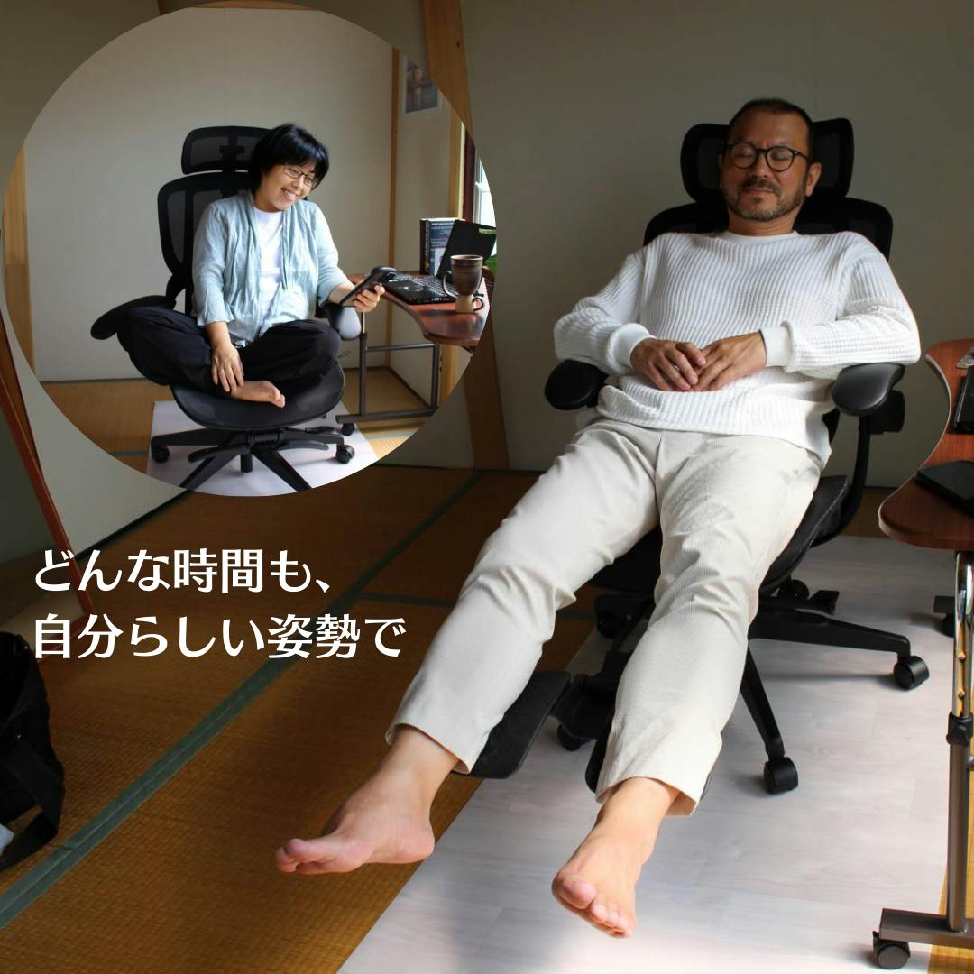 日本人の体格と生活習慣に合わせた独自構造で、腰をしっかり支えながら、自由な姿勢を叶える。