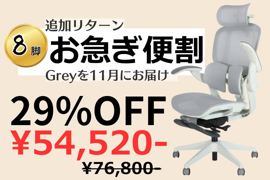 来月にお届けできる「お急ぎ便割Grey」があと1脚のみとなりました。