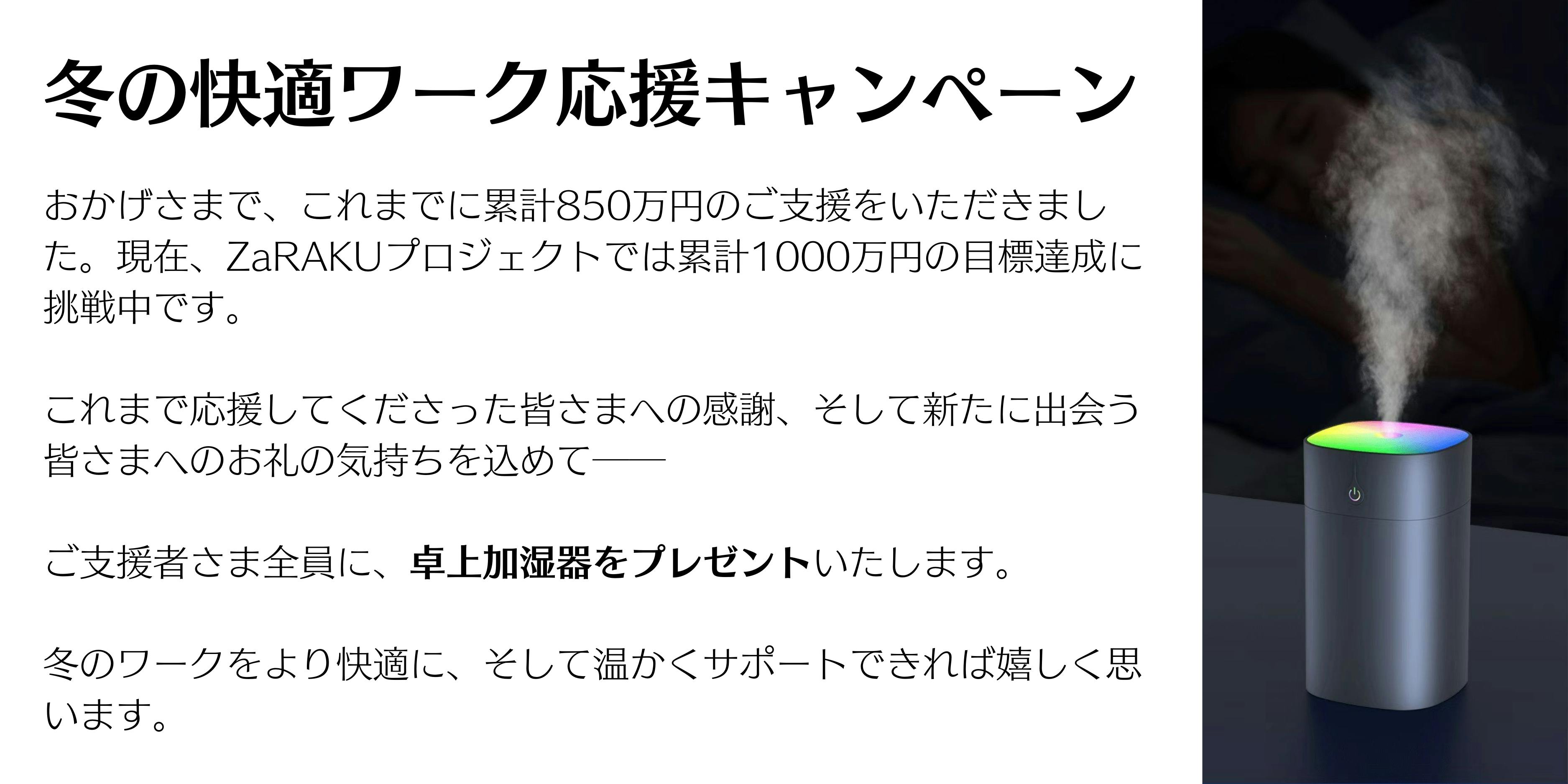 寒さが増すこれからの季節、心地よく集中できるワークタイムをZaRAKUとともに過ごしていただければ嬉しく思います。