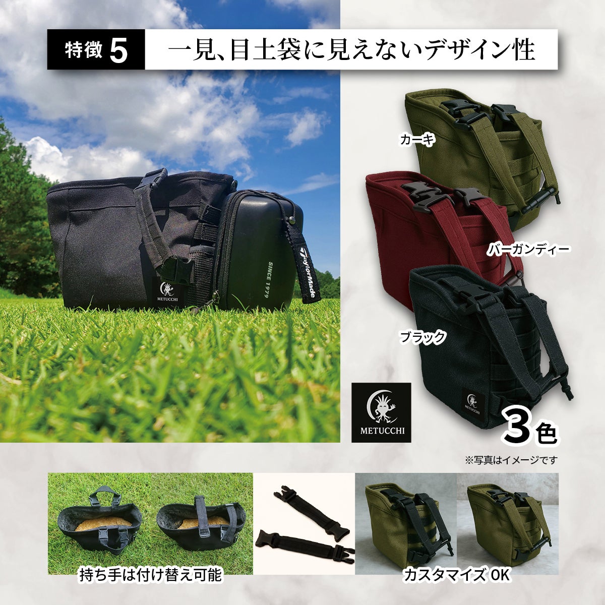その不便をスマートに解決するために誕生したのが、セルフプレーサポートバッグ『めつっち』です。