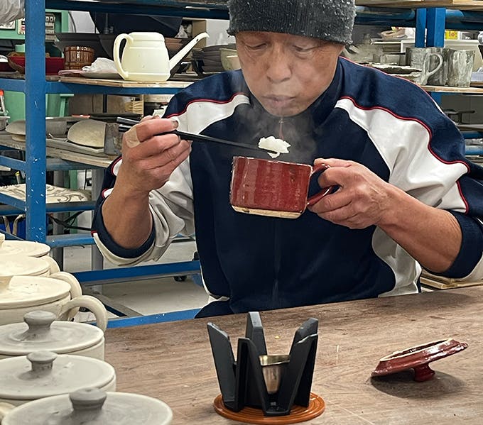 火から下ろしても温かさを保つ高い蓄熱性、炊きムラを防ぐ耐火性と吸水性。「呼吸する土」とも呼ばれ、ご飯がべたつかず、ふっくら仕上がります。