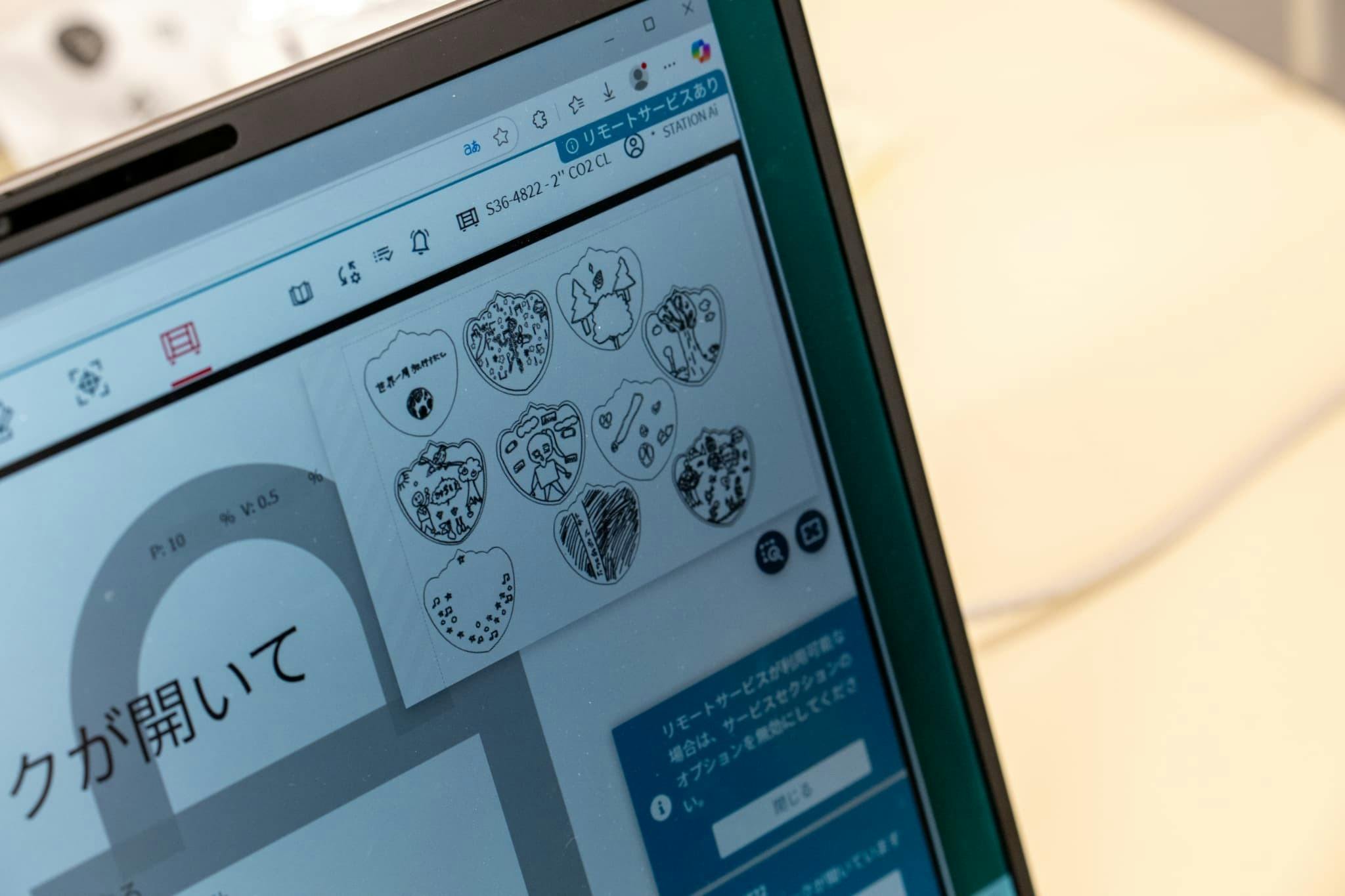 この下絵をどのようにパソコンに取り込んで、レーザー加工機で加工するかマーロンが説明します。