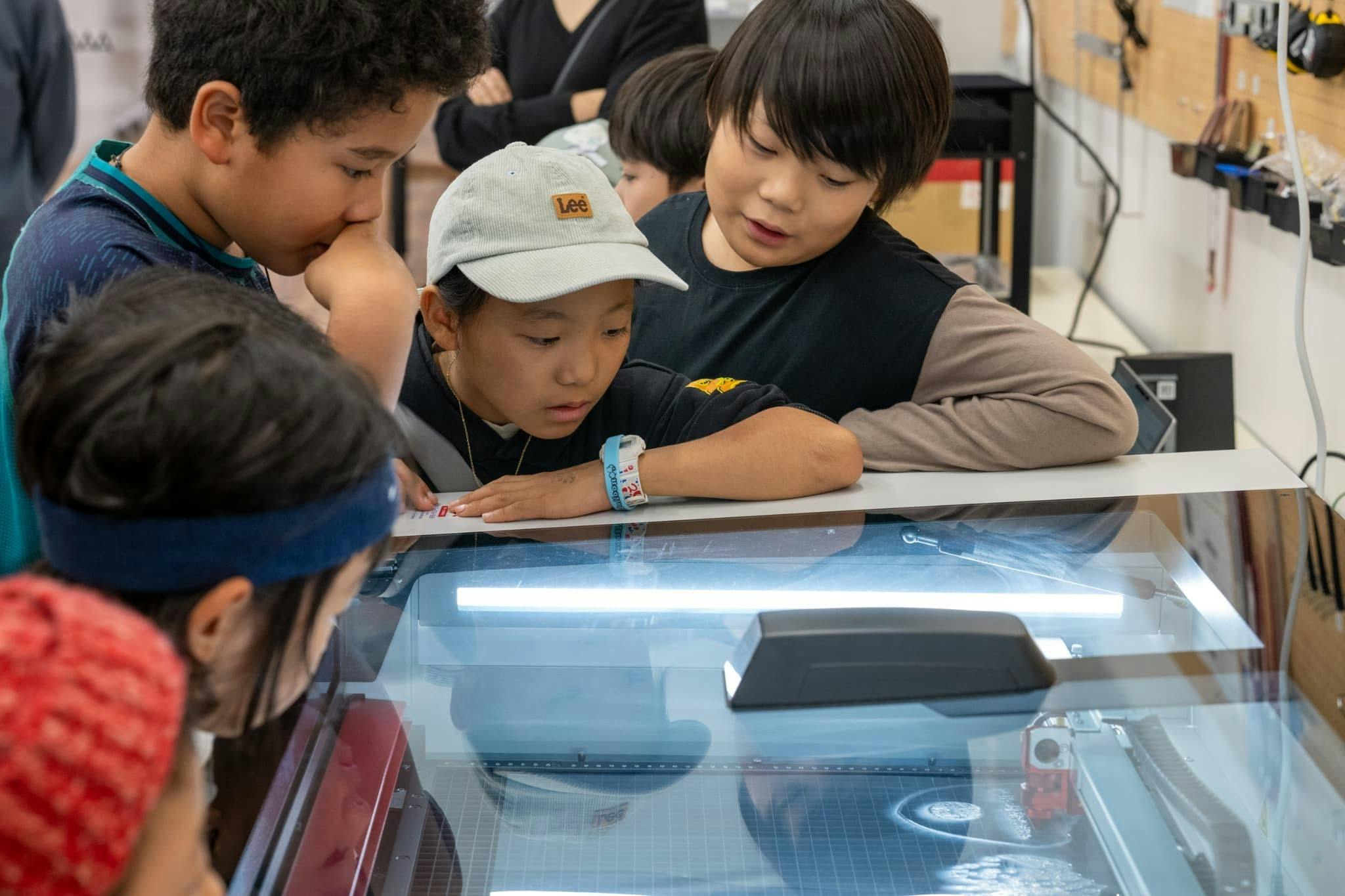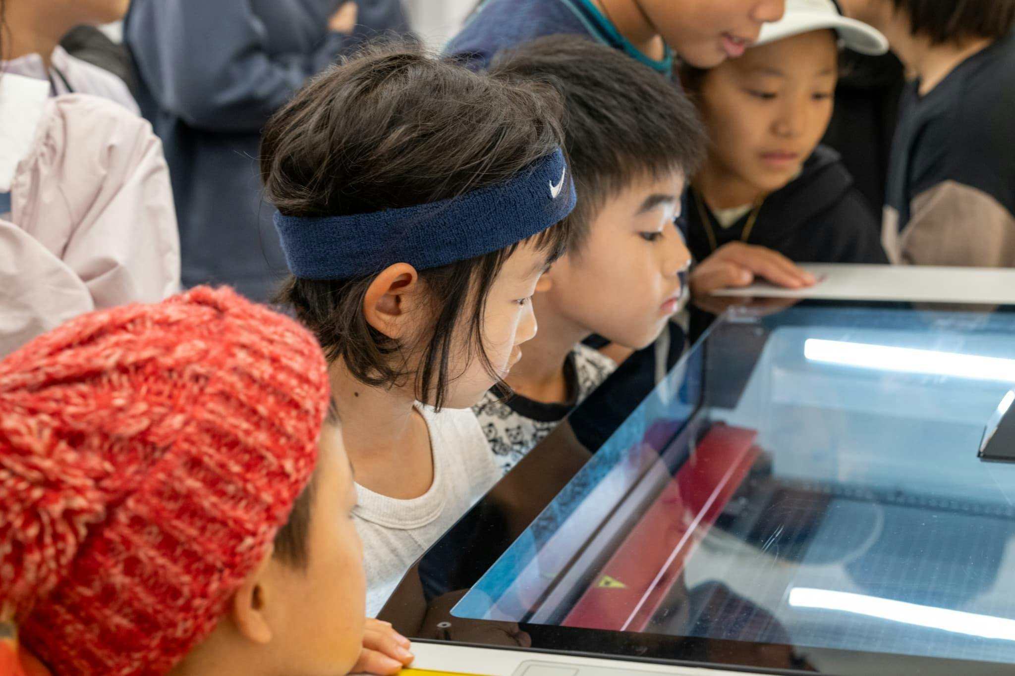 今回、使用するのはレーザー加工機。「レーザーって本当にあるの?」という子どもたちの質問からワークショップはスタートしました。