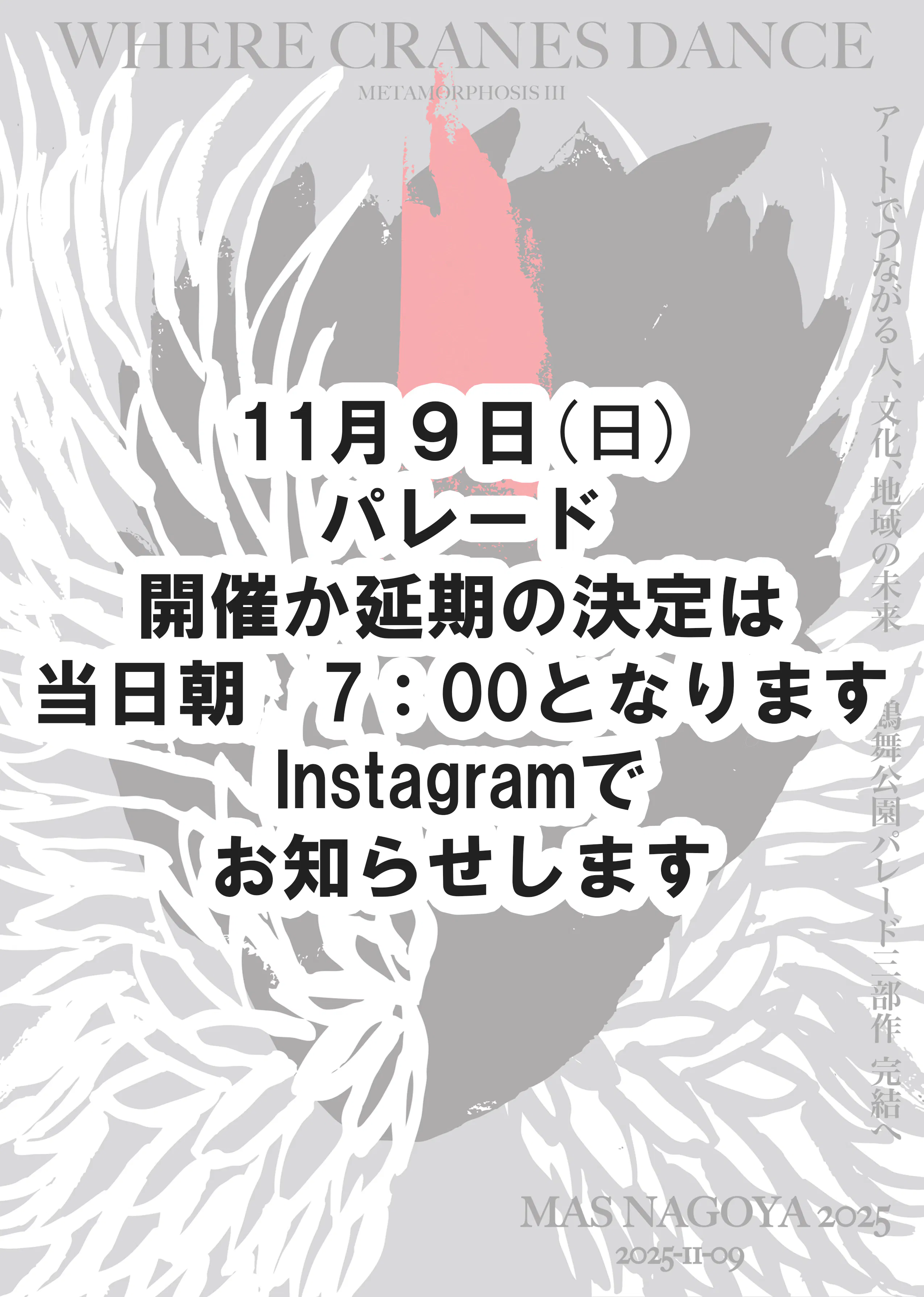 延期の場合は11月16日(日)同時間に延期となります。