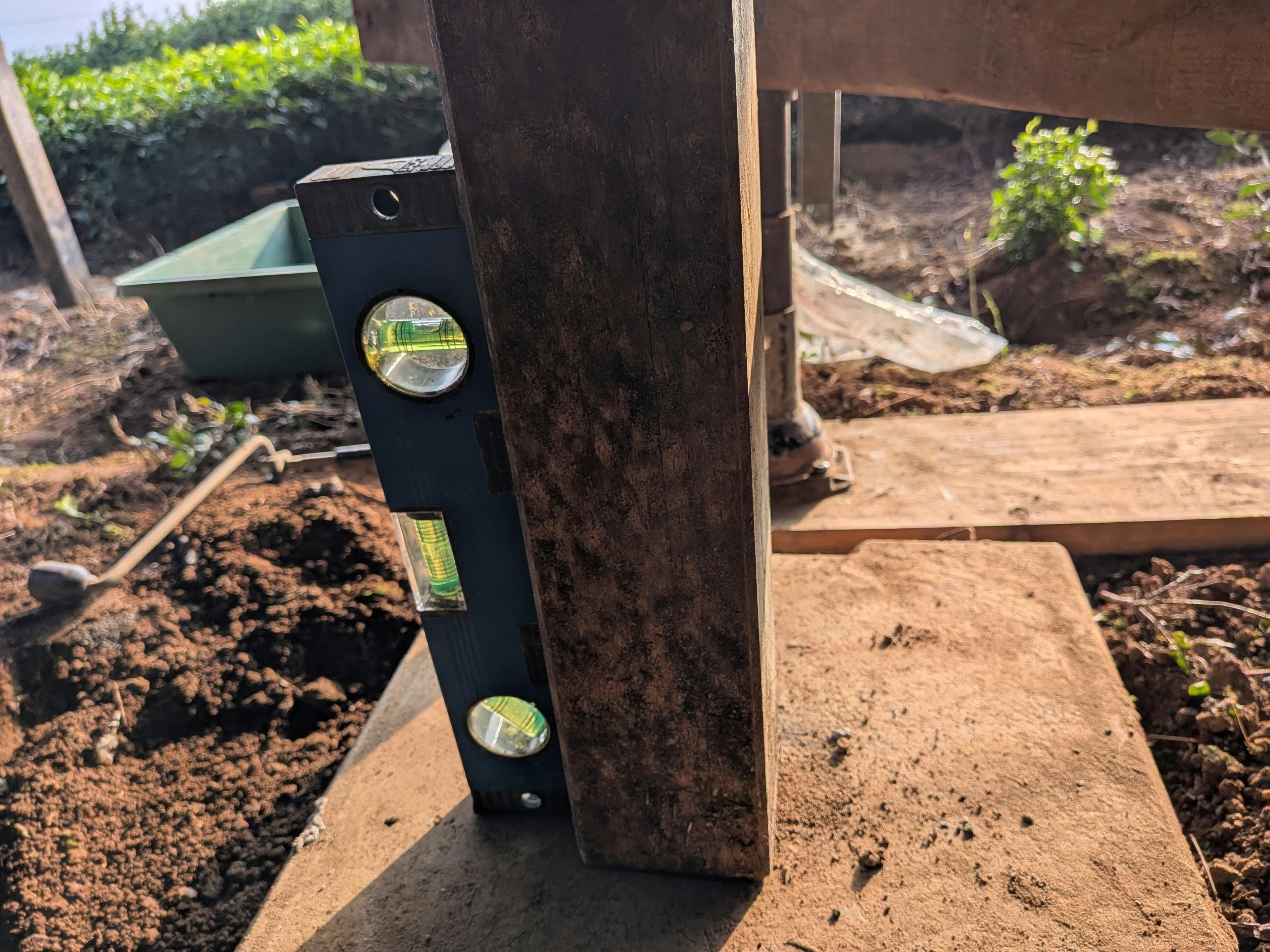 歪んだテラスの歪み矯正は薄くコンクリートをしいているので、どうしても1日に1本がやっとです。