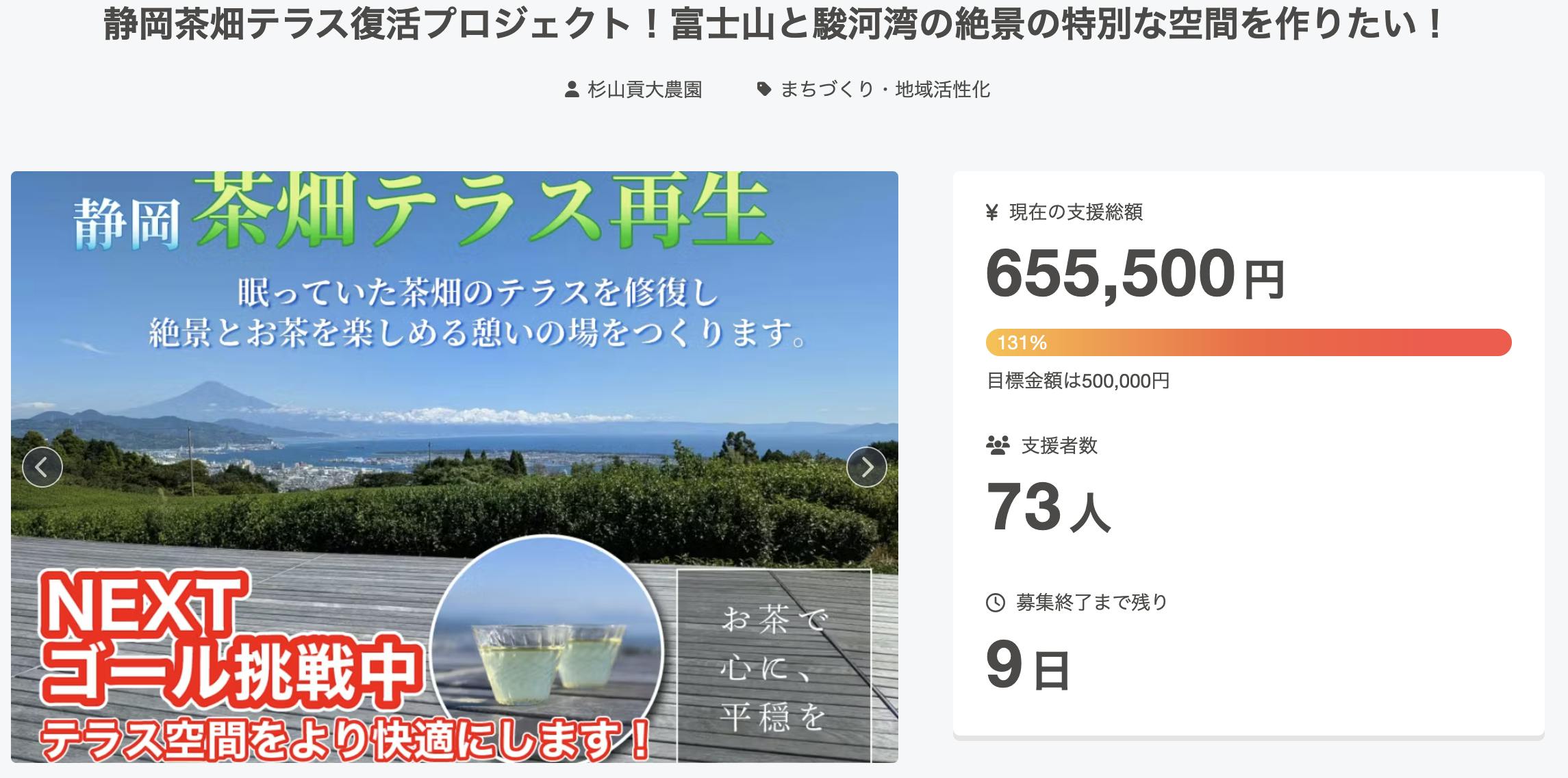 ネクストゴールのご支援金は茶畑にあてさせていただきます。