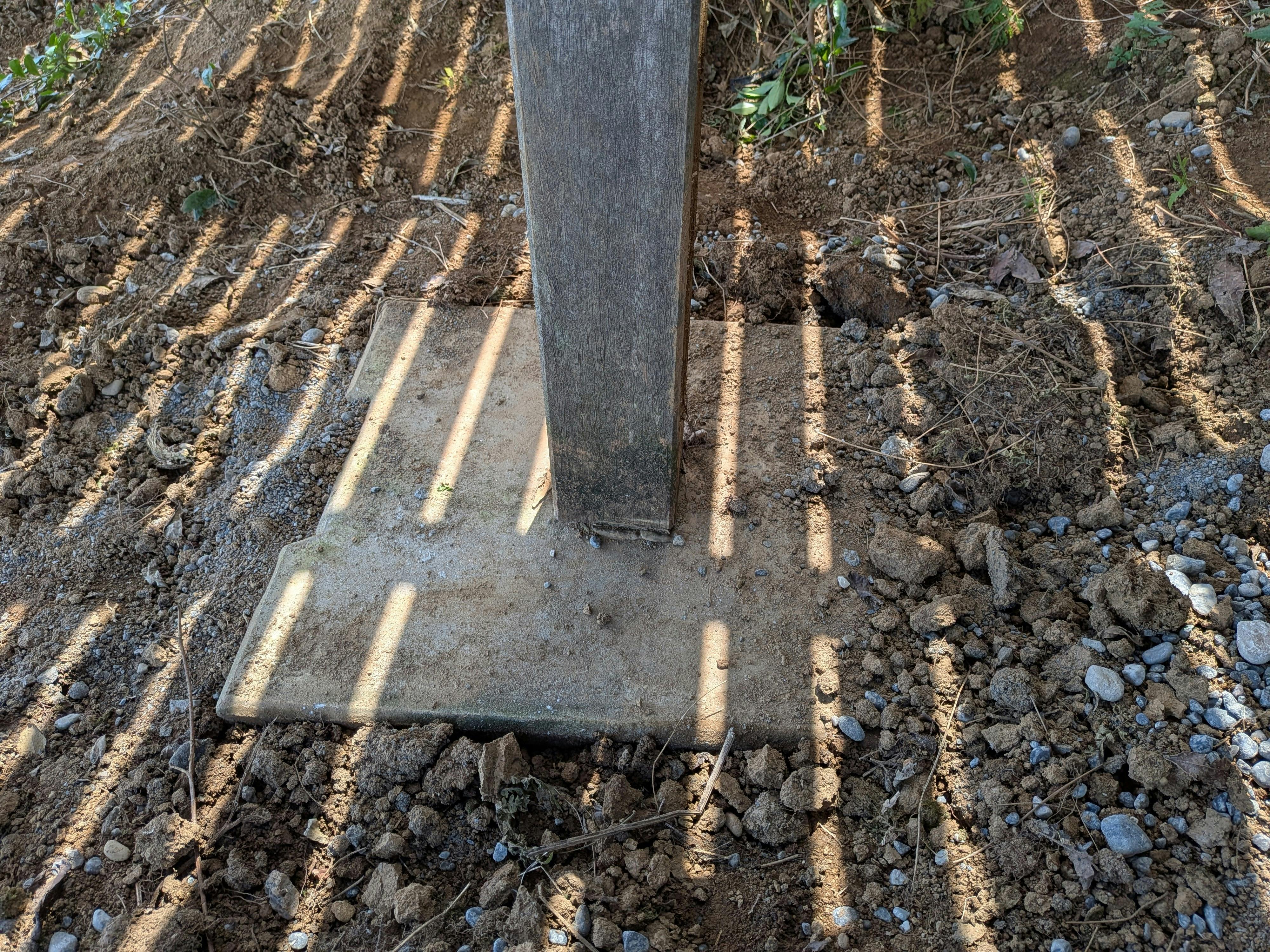 金属プレートにお名前を刻印して、足場の基礎ブロックに打ち込みます。
