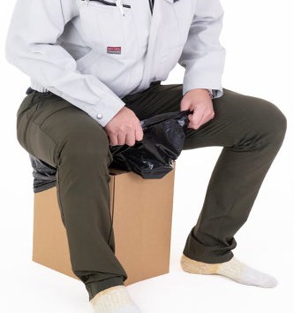 また、本体のトイレが小さい分、袋に余裕ができることもポイント。成人男性でも袋の手前を引き上げることで、座って用を足すことが可能です。非常時、例えば車の中などでもチョイレを使用できます。
