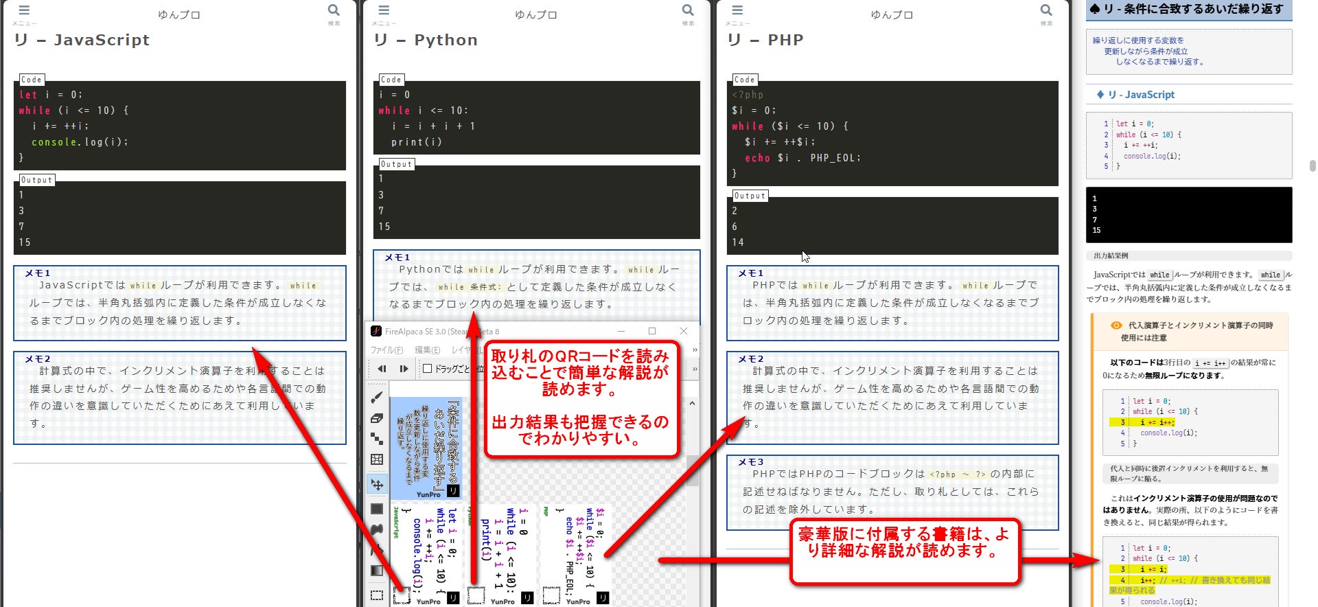 ・豪華版:JavaScript/Python/PHP/C++/C#/Javaと、解説本をセットに。プログラミングの初級者~上級者までにオススメ。