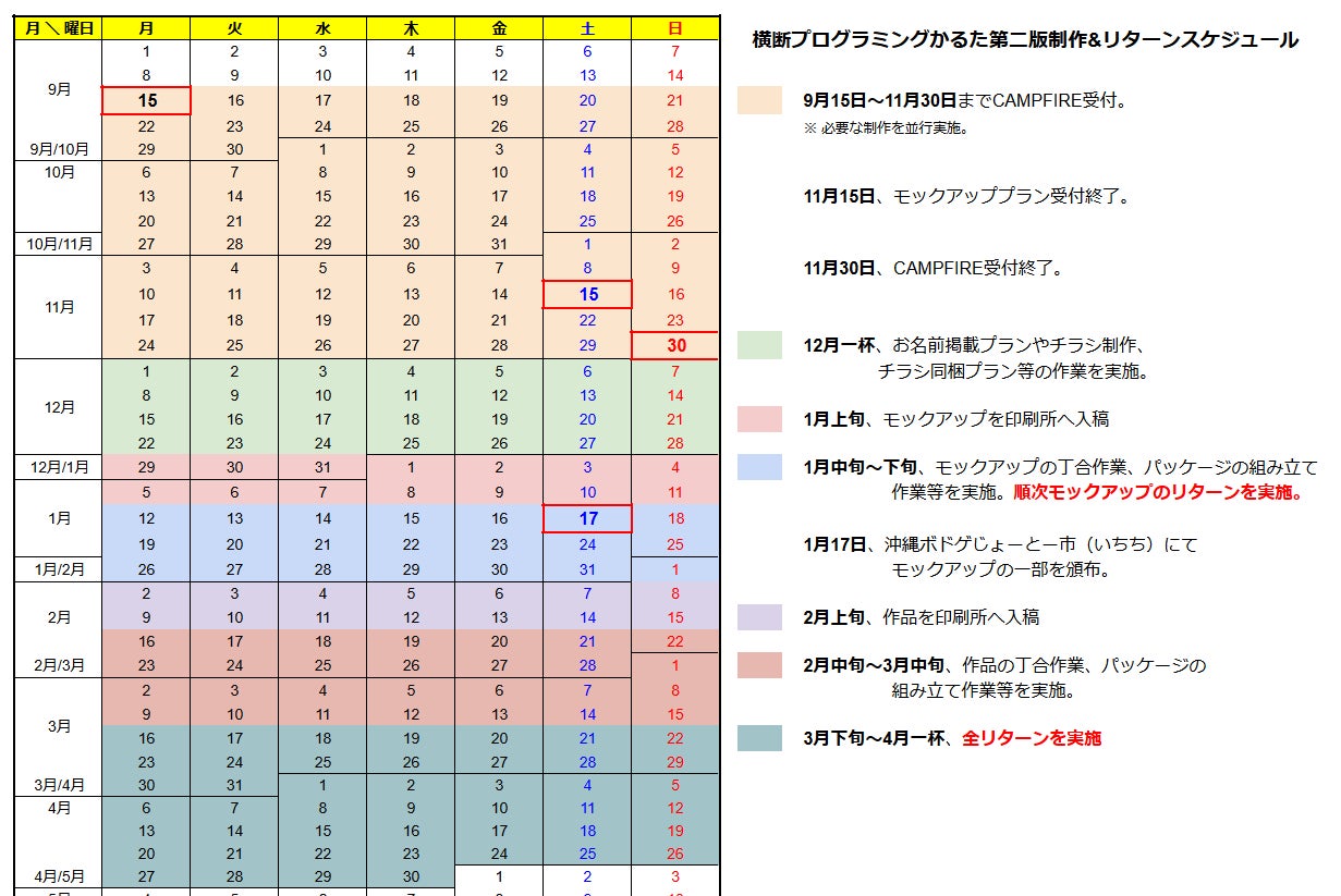 ※ 支援者へのリターンは概ね、モックアッププラン1月下旬、その他のリターンは3月下旬~4月一杯を想定しています。
