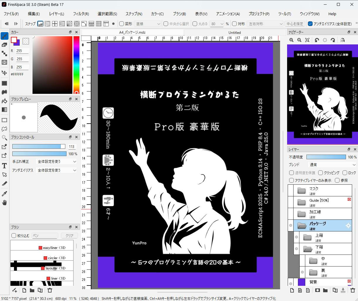 現在鋭意制作中の新作『横断プログラミングかるた』では、2025年8月頃より制作を進めてきた関係で、Python・PHP・C#・Javaのプログラミング言語の採用バージョンが2026年1月~4月にかけて頒布を開始する新作としては、若干バージョンが古めになる可能性がありました。