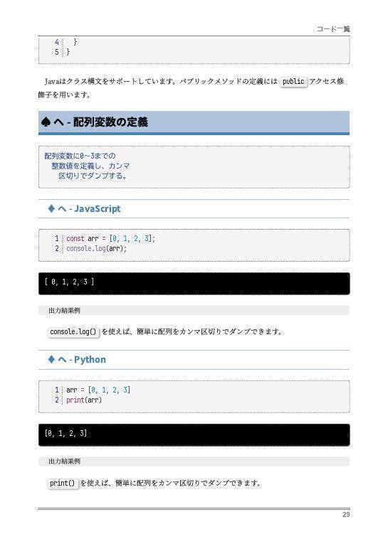 現在制作中の豪華版へセットする『横断プログラミングかるた第二版コードブック』(解説書籍)のキャプチャー画像(現在制作中のためレイアウトや内容は今後変更になります)。