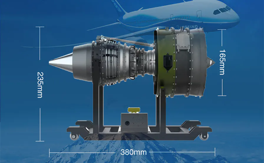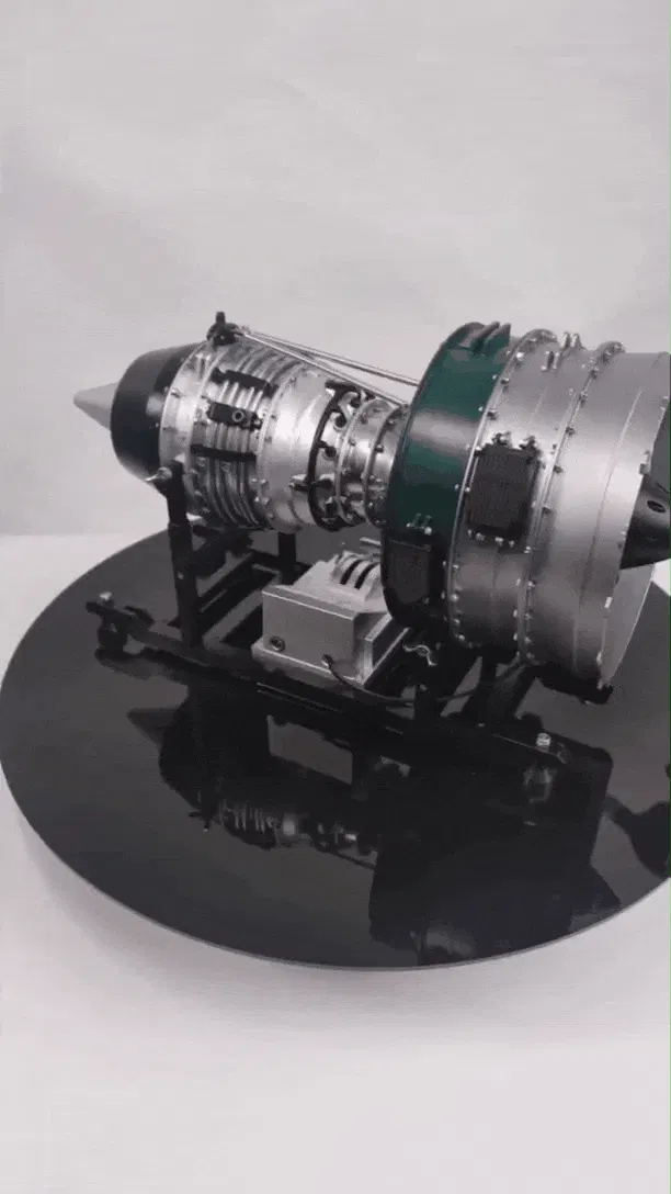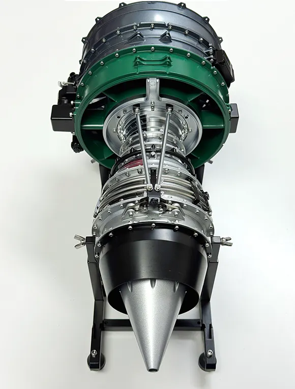 実物大のエンジンを忠実に再現し、視覚的にも美しいこのモデルは、前方のファンから低圧圧縮→高圧圧縮→燃焼→高圧タービン→低圧タービンなどを備えた実物エンジンをリアルに再現しています。