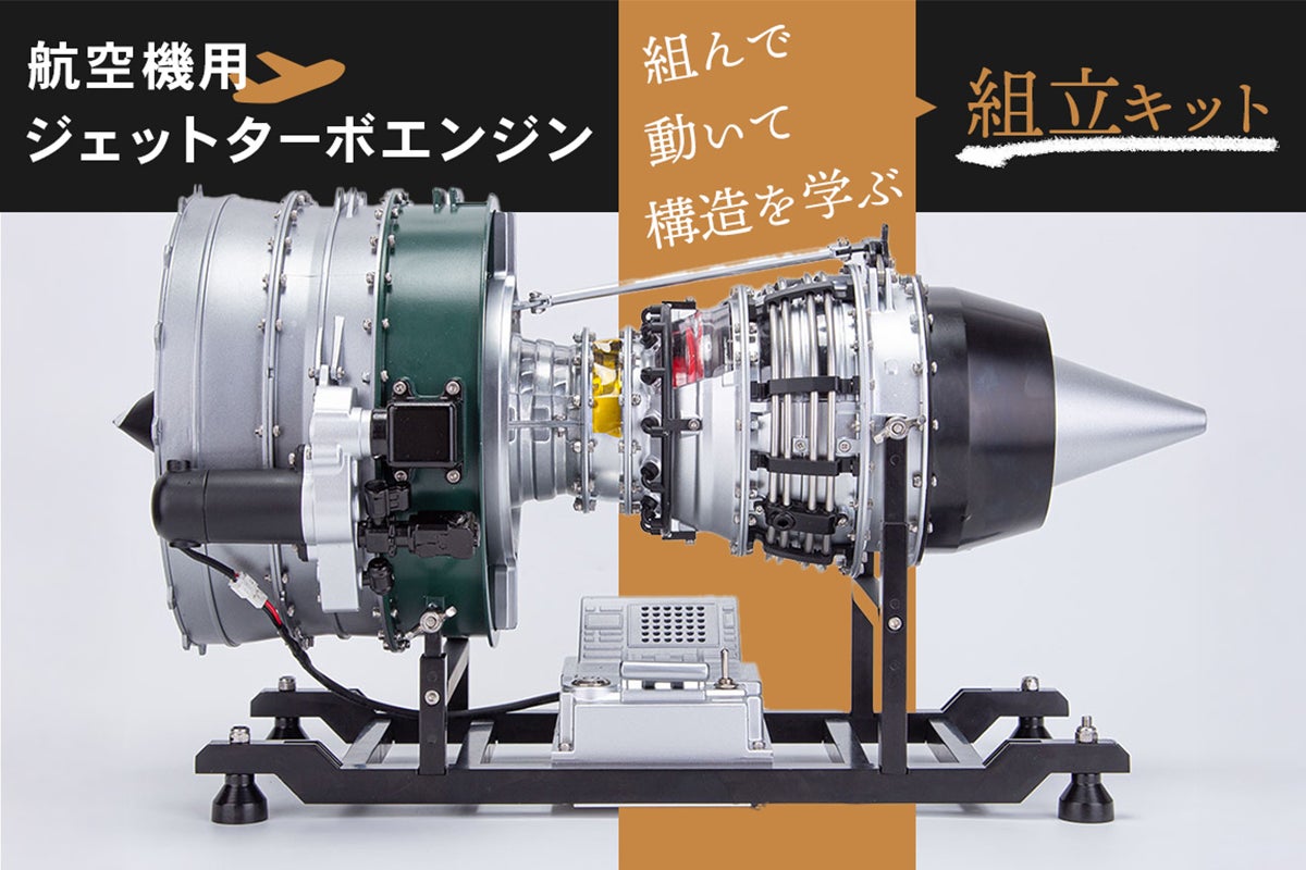 民間機航空機に幅広く採用されているターボファンエンジンの構造と原理を忠実に再現した1/10縮尺モデルです。精巧に作らた1つ1つのパーツを組立ながら、複雑なエンジン構造をひも解いてその原理を理解そして知識を養えます。完成後はアクセサリーギアボックスに取り付けられたモーターで全体を動作させることができます。いわゆるジェットエンジンの内部がどうなっているかを知る貴重な模型でもあります。