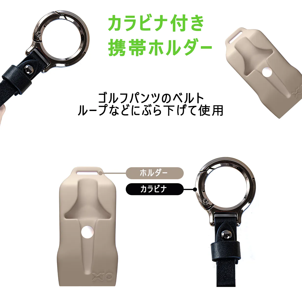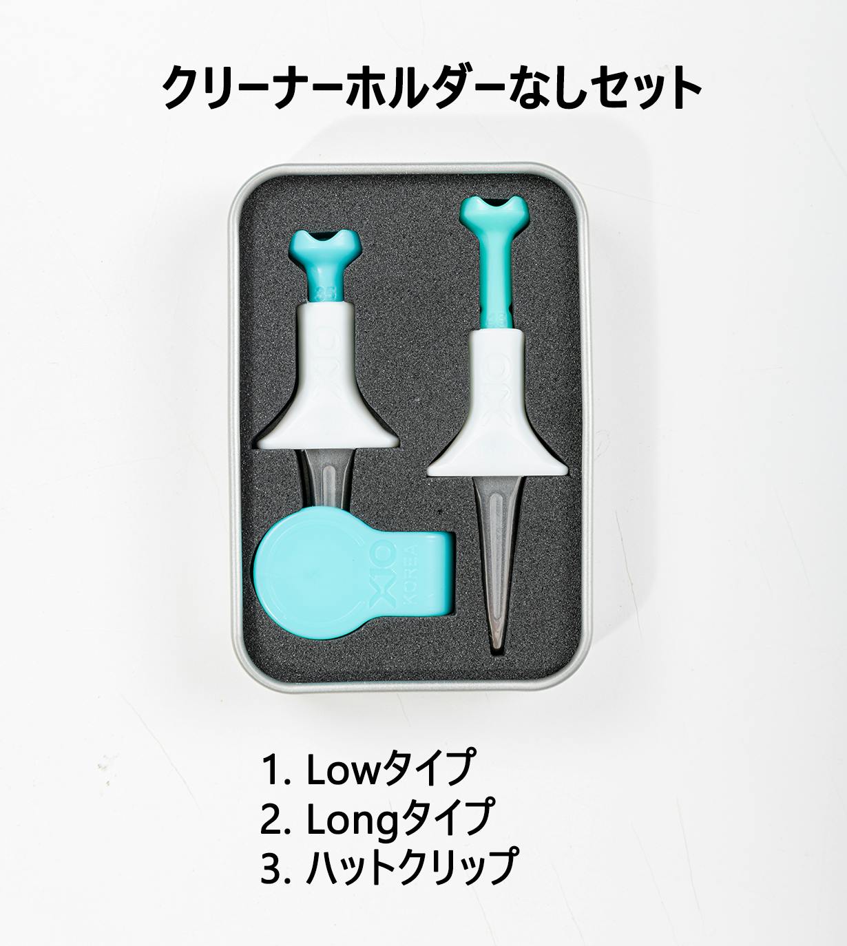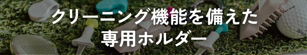 カラビナ付きの専用ホルダーにはクリーニング機能がついています。ハットクリップ同様にティーを磁力で保持します。