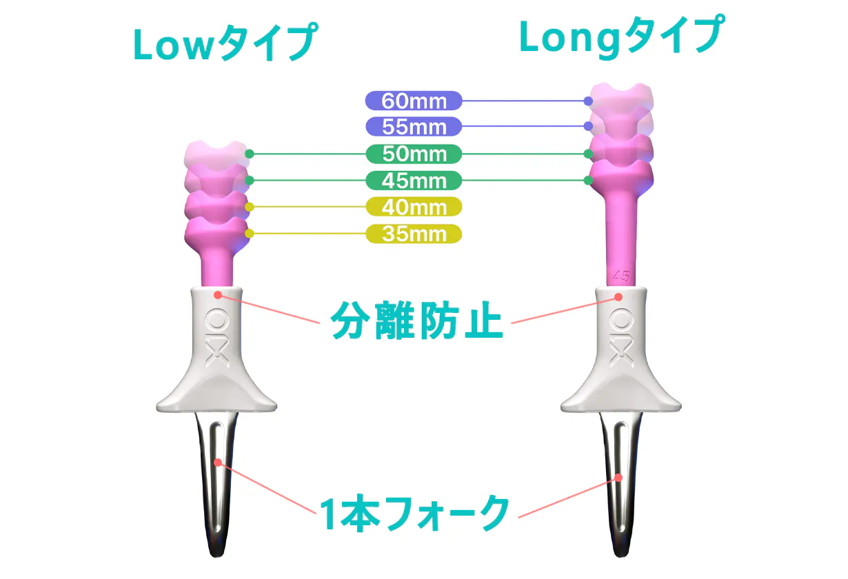 最長60mmまで対応できるようLowタイプとLongタイプの2種用意