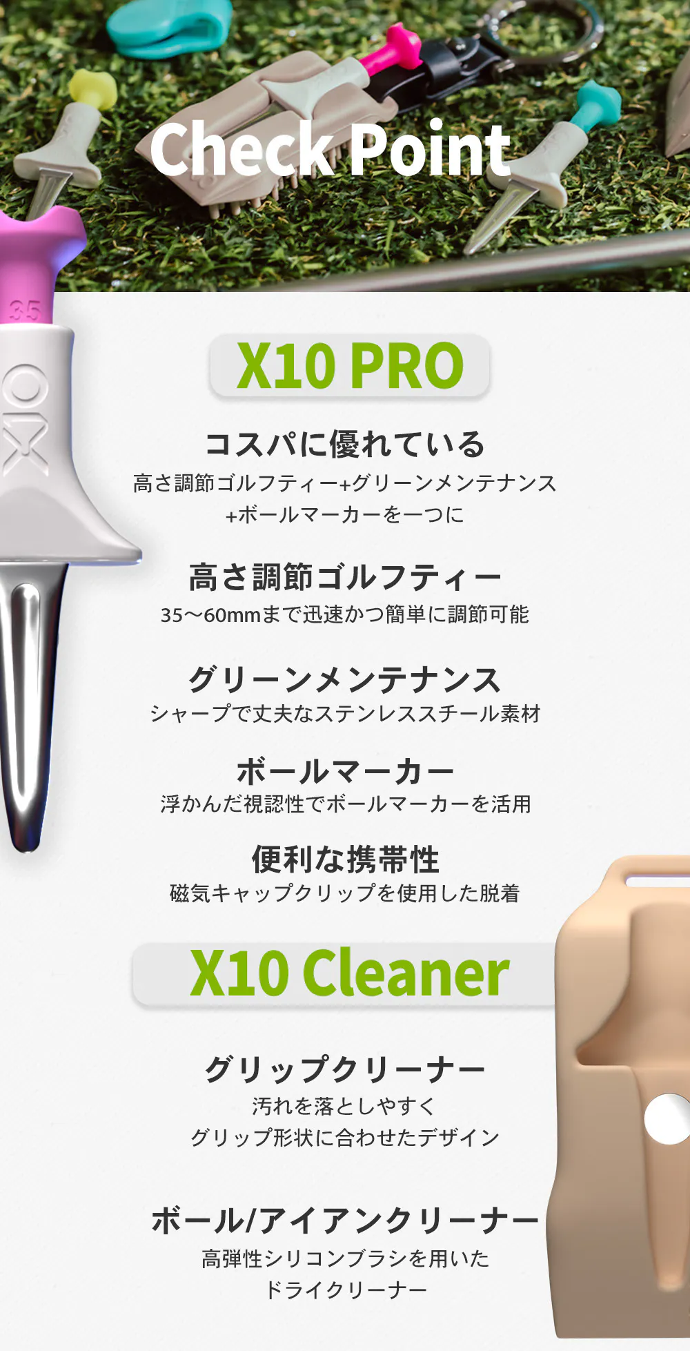 さらに、ティーケースにはクリーニング機能など、ゴルフプレイヤーをサポートする様々な機能がついています。