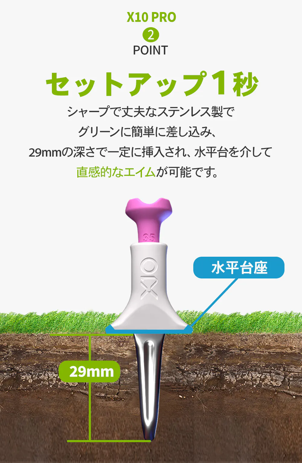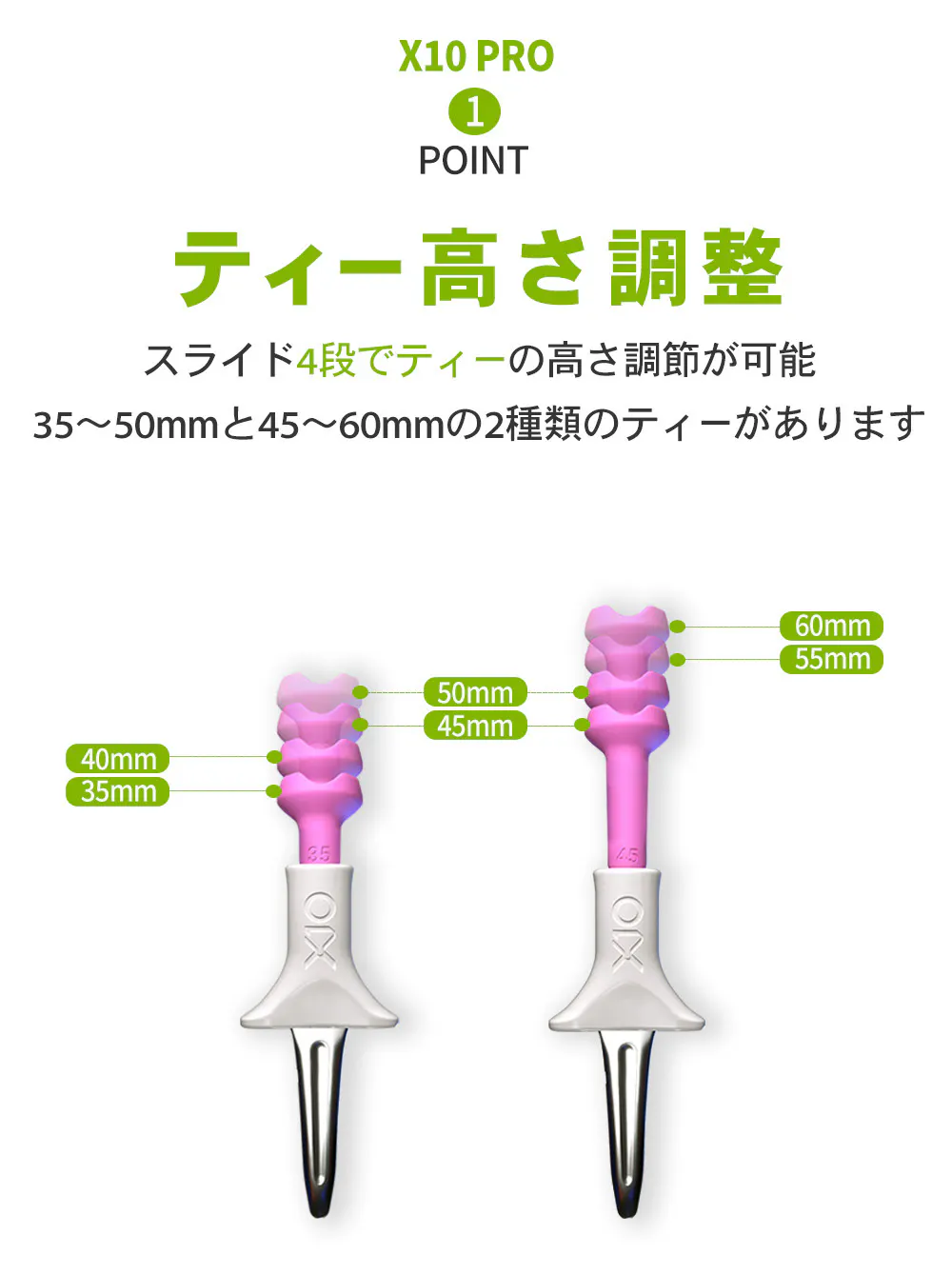 「オールインワンゴルフティー」は好みの高さに設定し、毎回同じ高さで設置できるゴルフティーです。