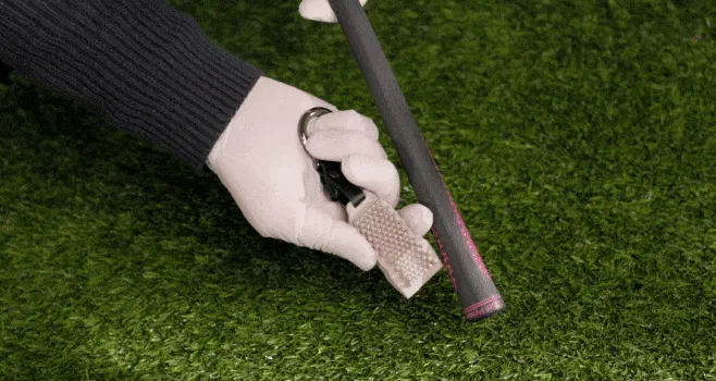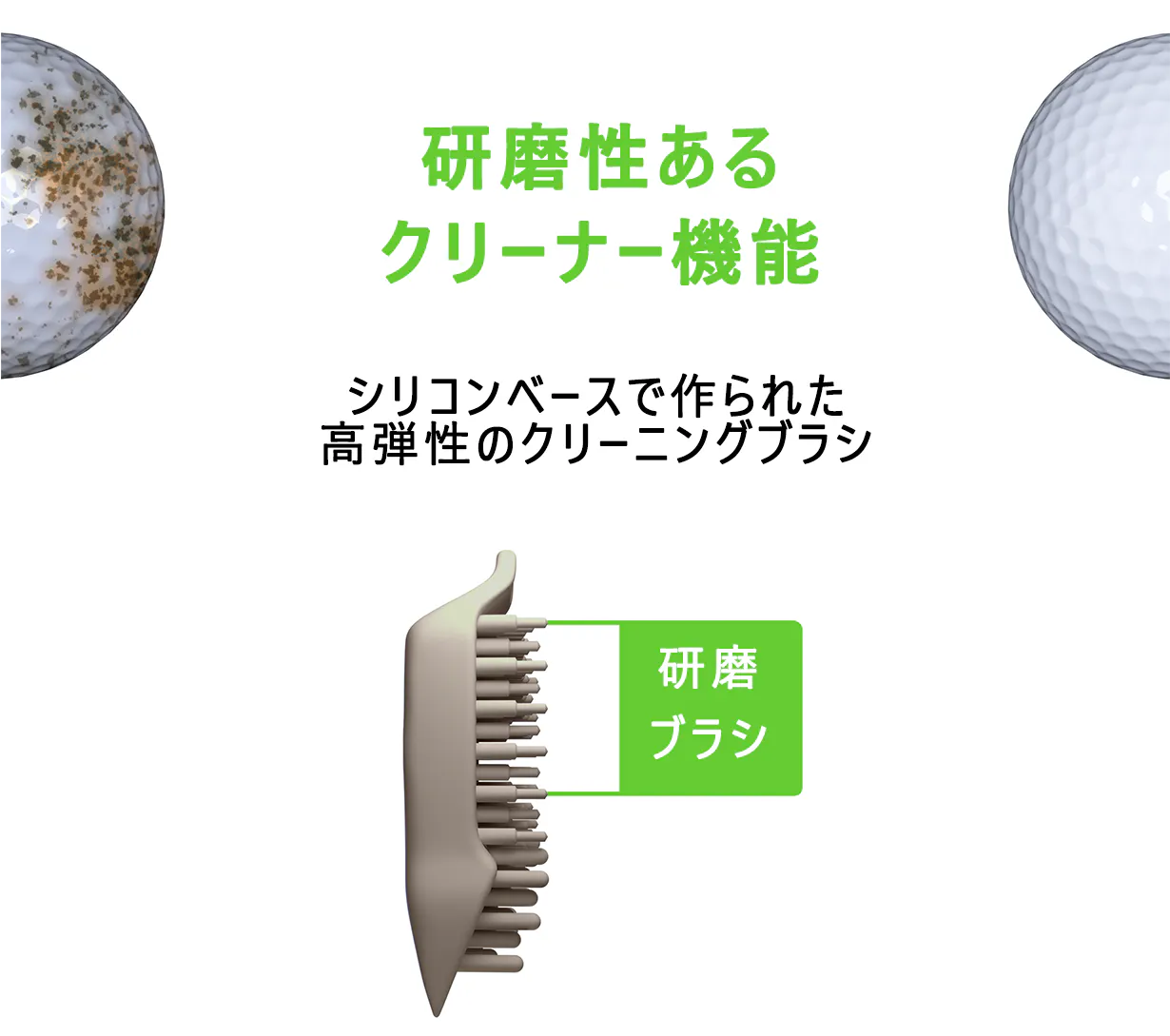 研磨性のあるシリコンブラシでボール、グリップなどプレイ中でも素早くクリーニング可能
