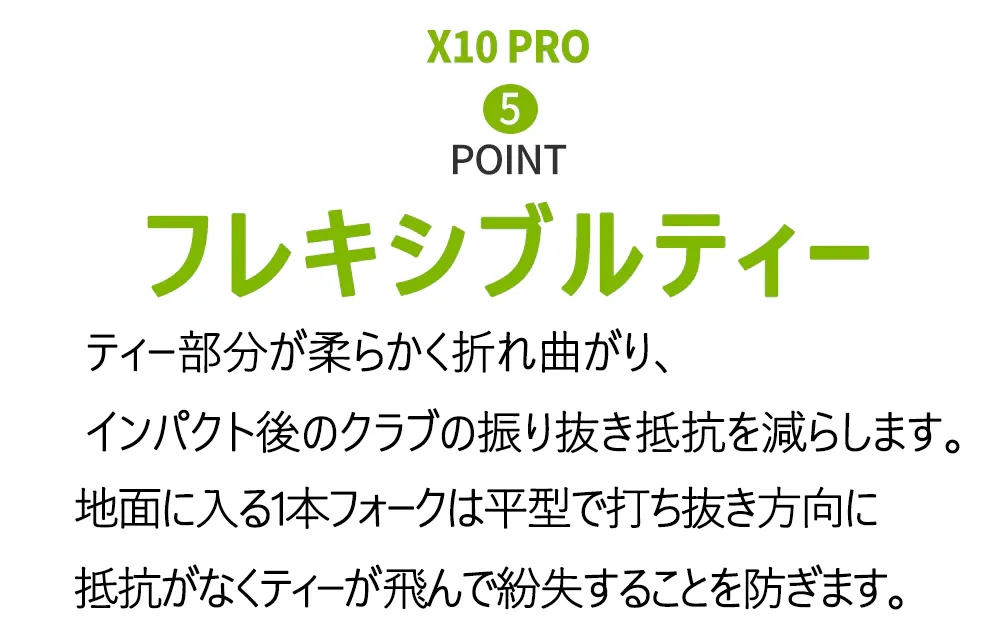 フレキシブルなティーベースはクラブの振り抜きの抵抗を極力減らし、ショットの安定に貢献します。