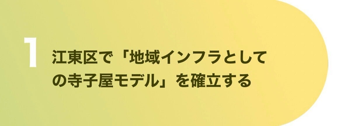 水道や電気のように、困ったときに誰もがアクセスできる当たり前のインフラとしての寺子屋モデルを確立することを意味しています。