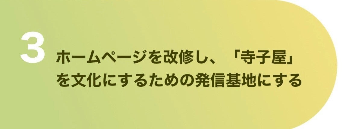 そこで今回のプロジェクトでは、ホームページを全面的にリニューアルし、「寺子屋」という文化の発信基地へと生まれ変わらせます。
