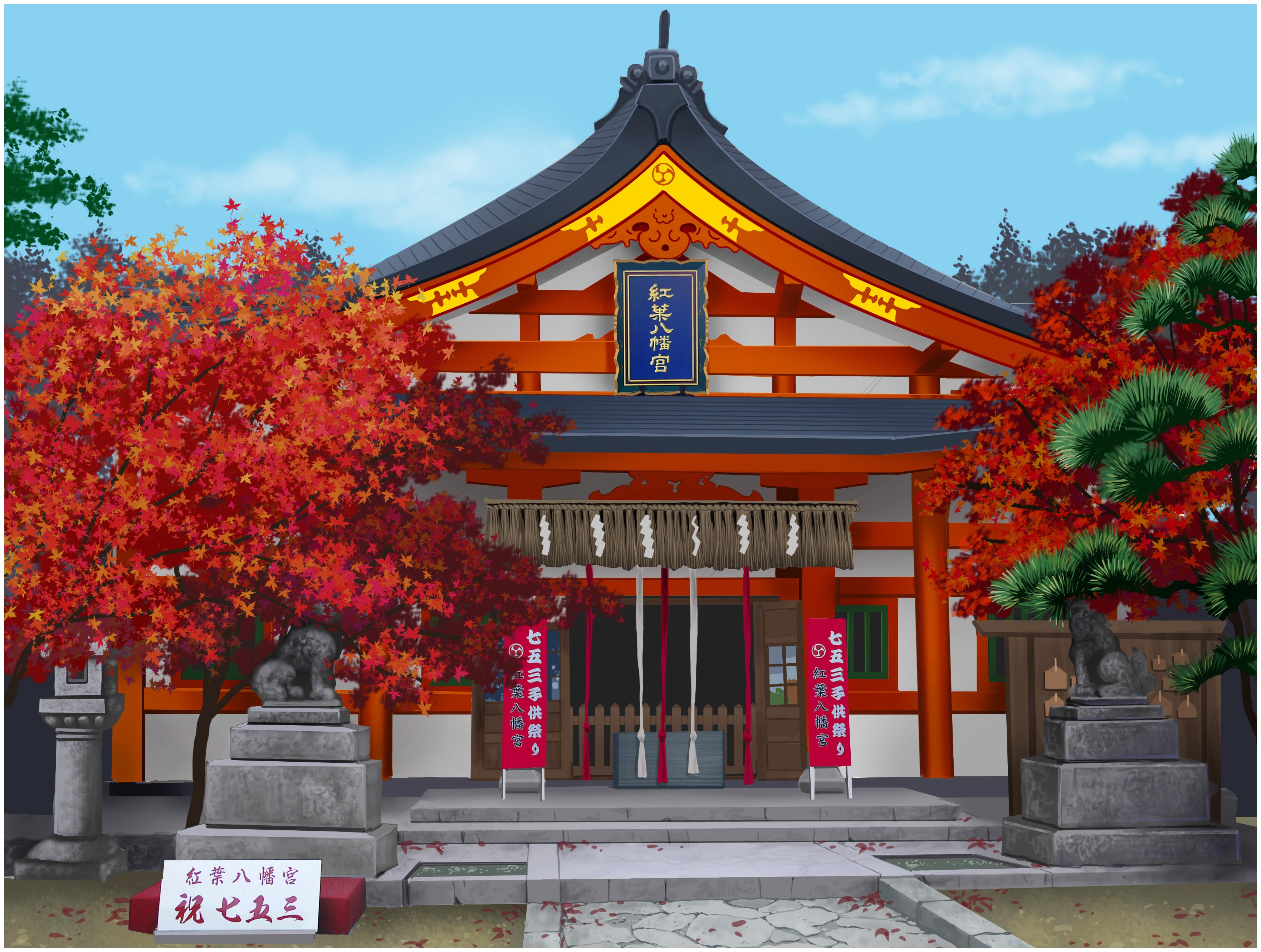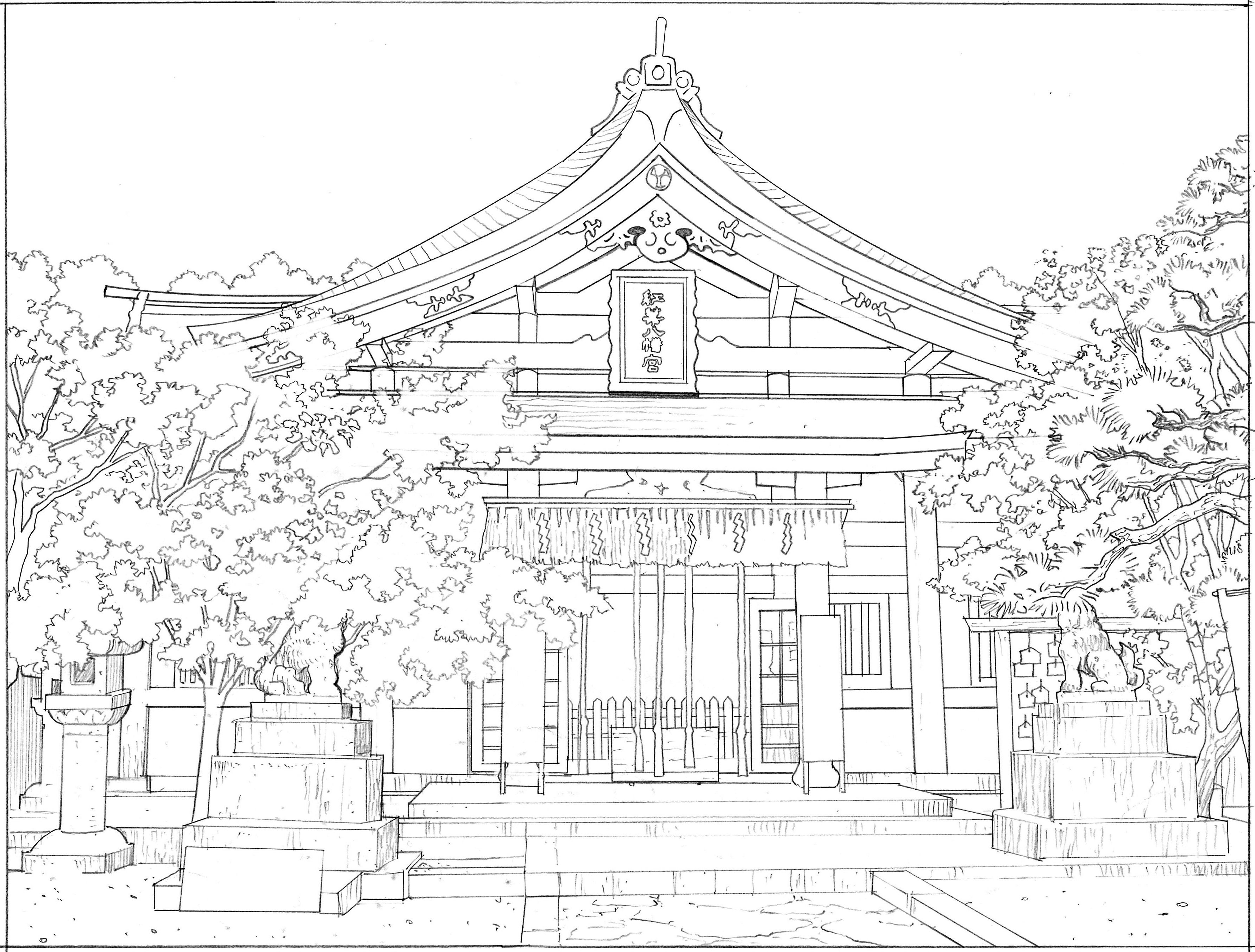 ■背景画下描き(紅葉八幡宮)