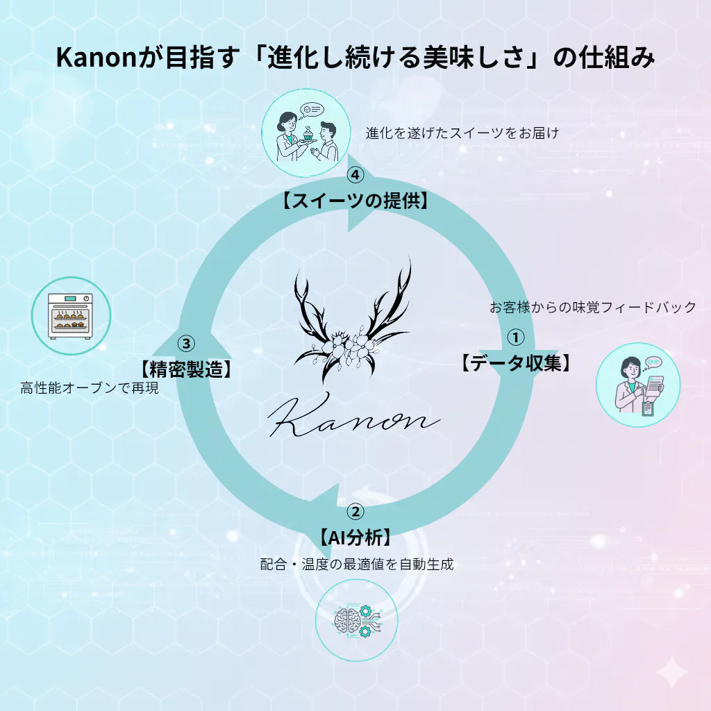 ぜひ、私とAIが作り上げる「進化し続ける最高の美味しさ」を体験し、AIスイーツ店『Kanon』の新たな挑戦を応援してください!