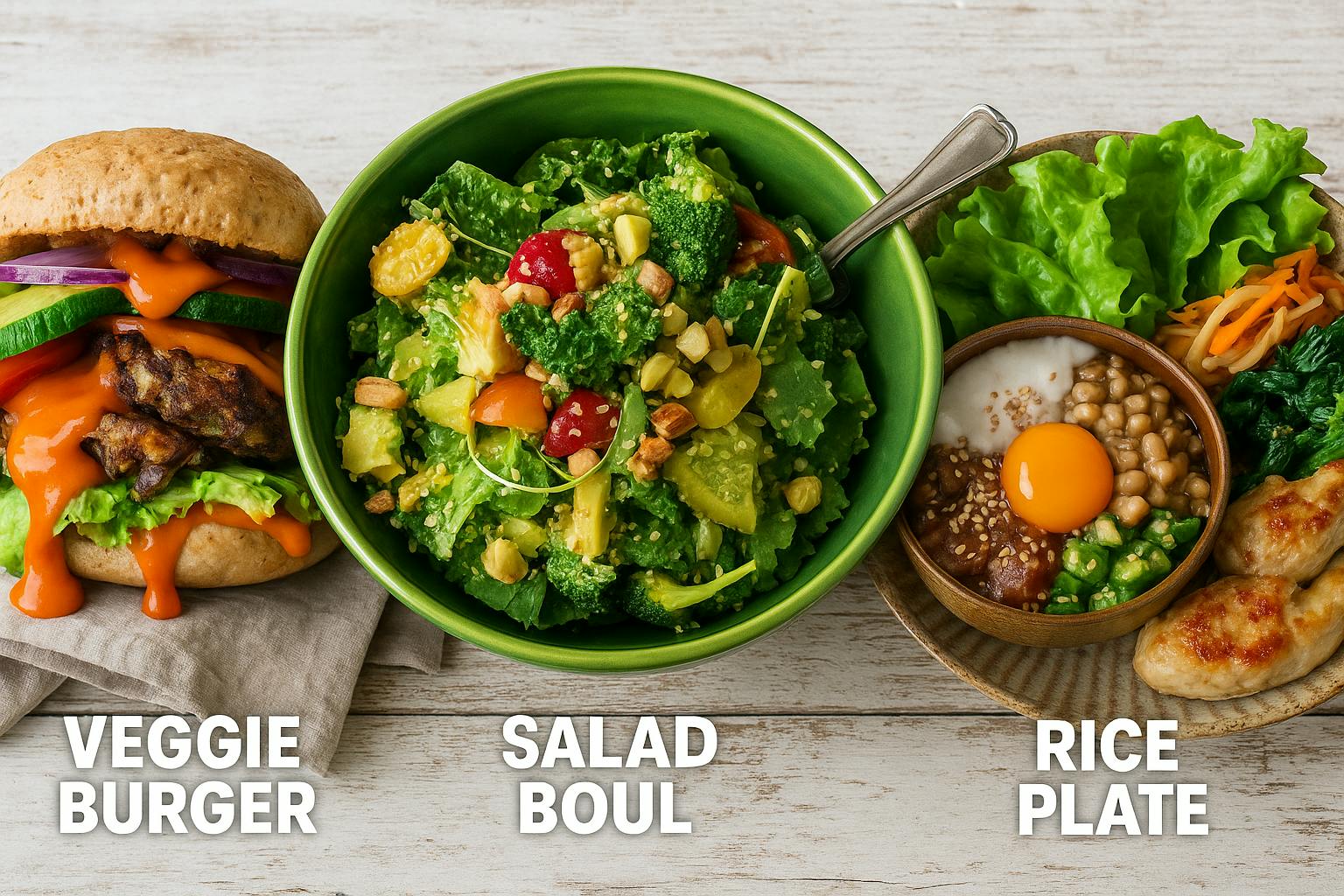 地元野菜を使ったサラダボウルライスプレート、ハンバーガーなどを予定。