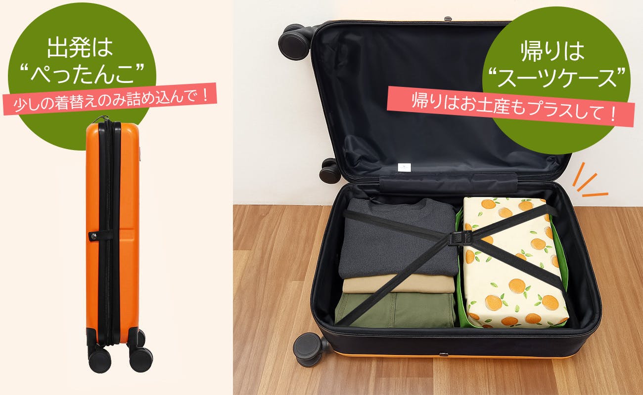 「使わないときはペッタンコに!」この新しい発想から生まれたのが「スリムになるスーツケース」です。
