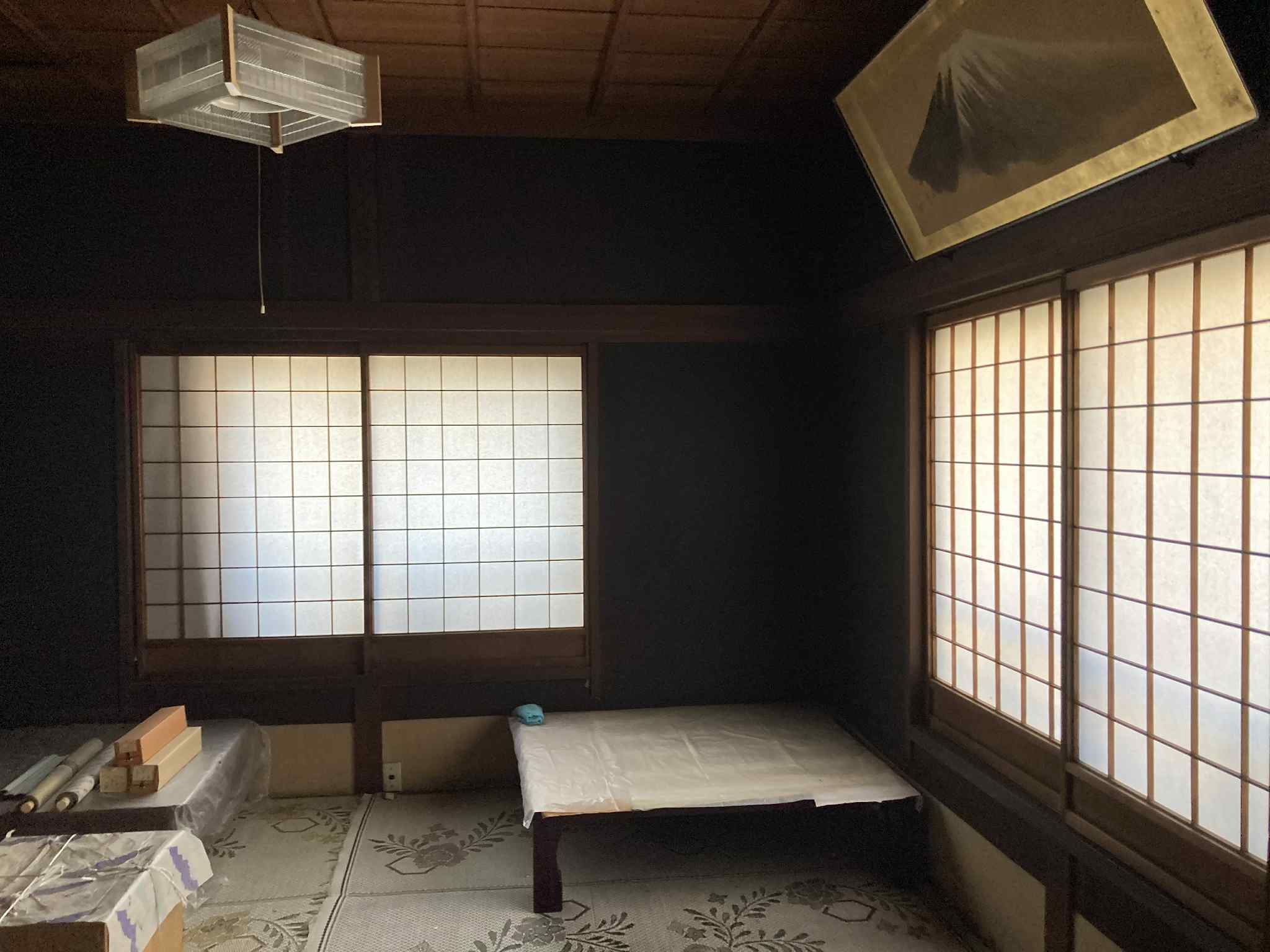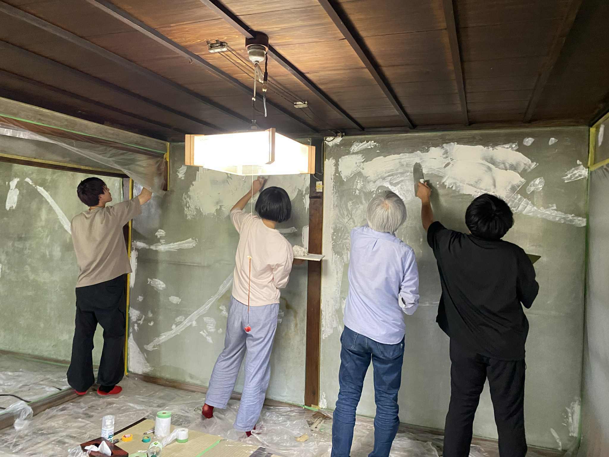 その後、トイレの改修を終え、1階客室の砂壁をはがし、珪藻土を塗ったり、障子を張り替えたりをみんなでやりました。