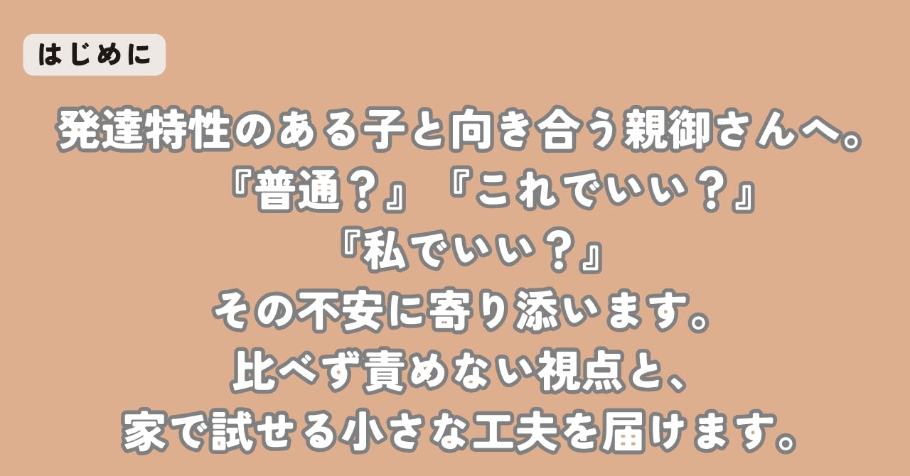 (想定読者=発達に課題を抱えるわが子との関わりに悩むお母さんお父さんが、「我が家で起こっている課題と似たことが、意外とよその家でも起こっているんだ」と気づいて視野を広げられるエピソードを紹介します)