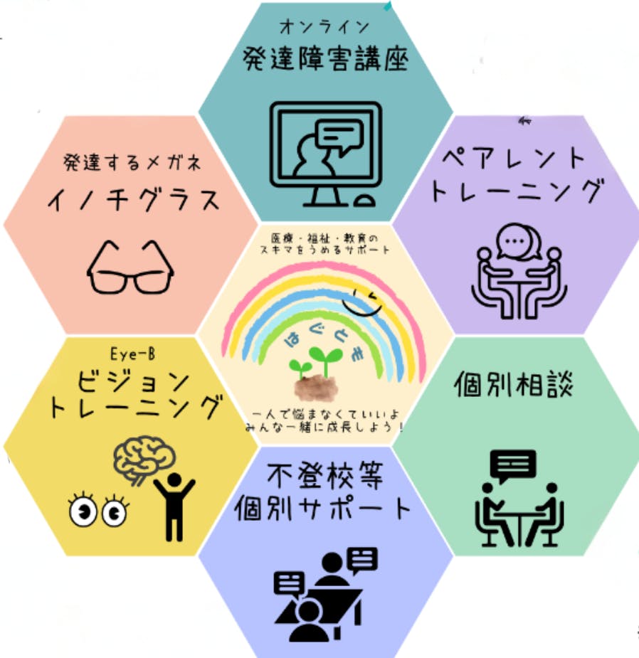 「はぐとも」では、発達障害の子たちや、診断はついてないけど特性を持っていて困っている子たち、あるいはその親御さんをサポートしています。